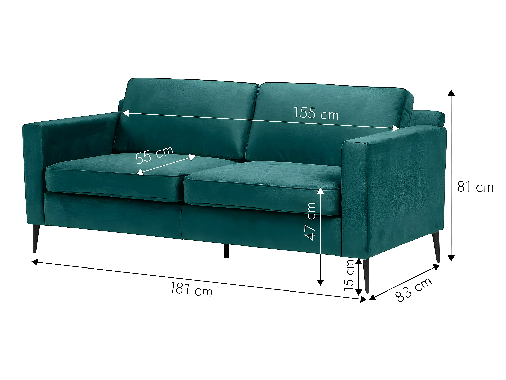Canapé en velours bleu 3 places Rio