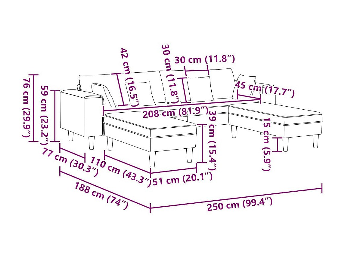 Canapé en velours avec coussin 3 pcs Noir 208 cm Velours