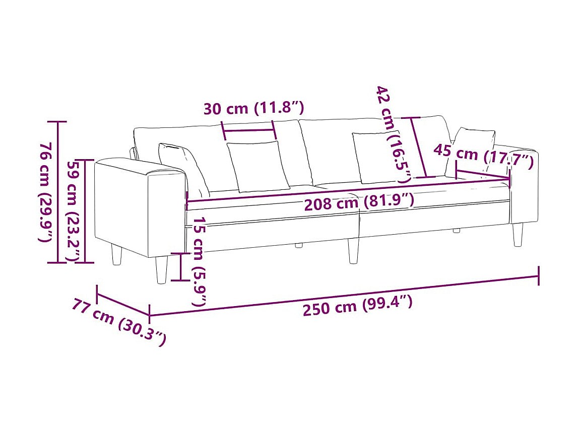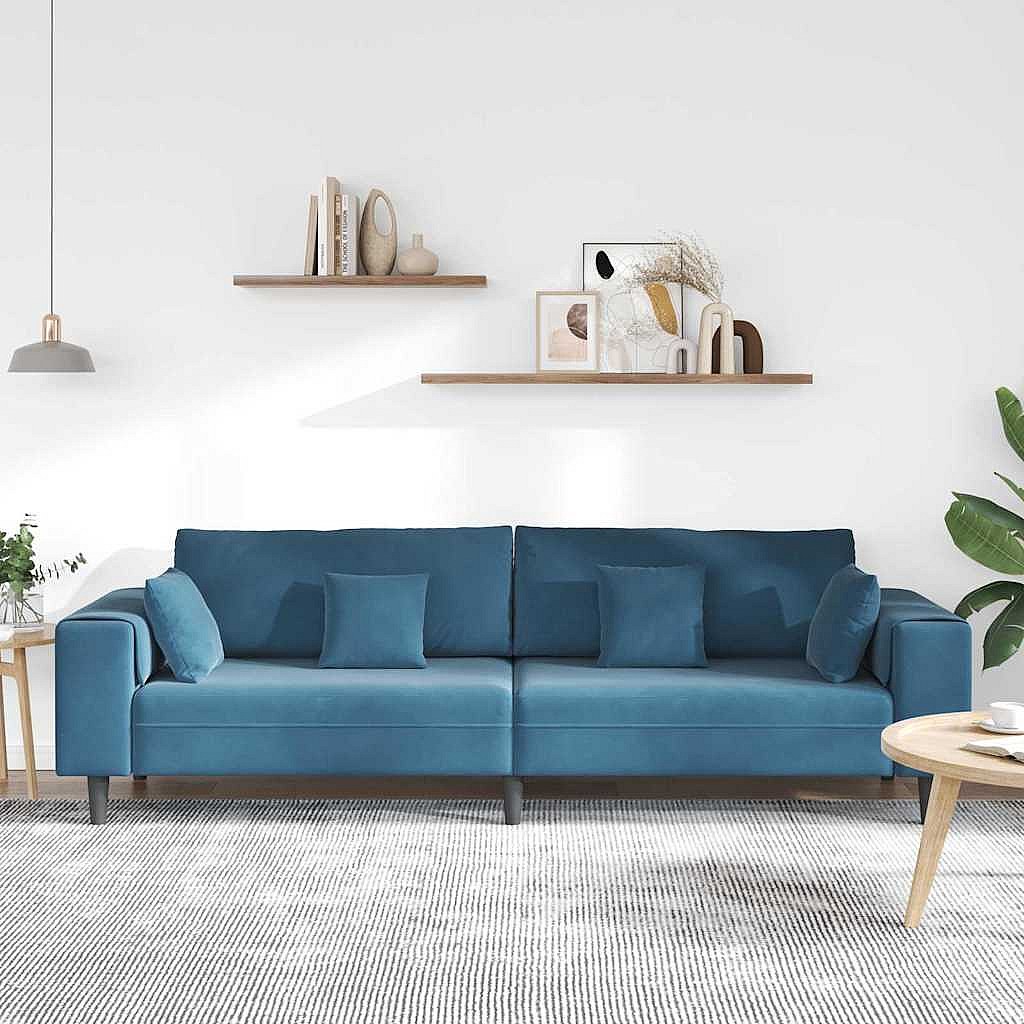 Canapé en velours avec coussin Bleu 208 cm Velours