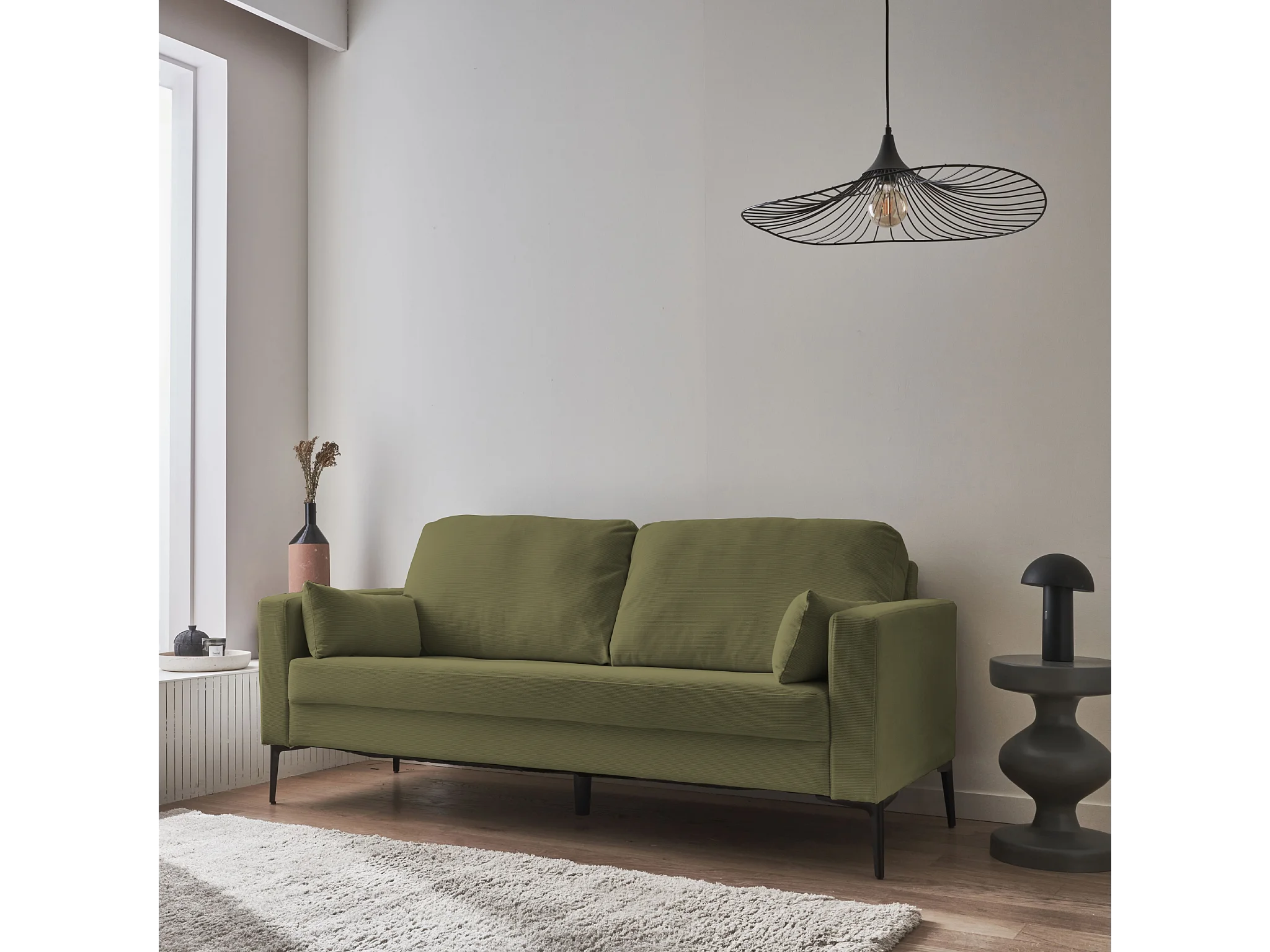 Canapé en velours côtelé kaki foncé- Bjorn - Canapé 3 places fixe droit pieds métal
