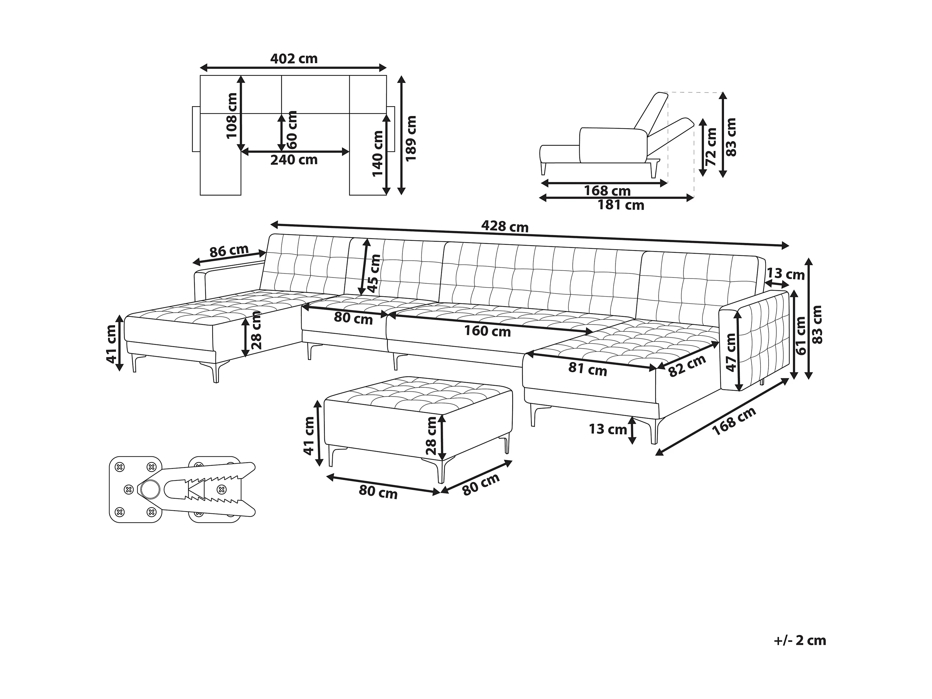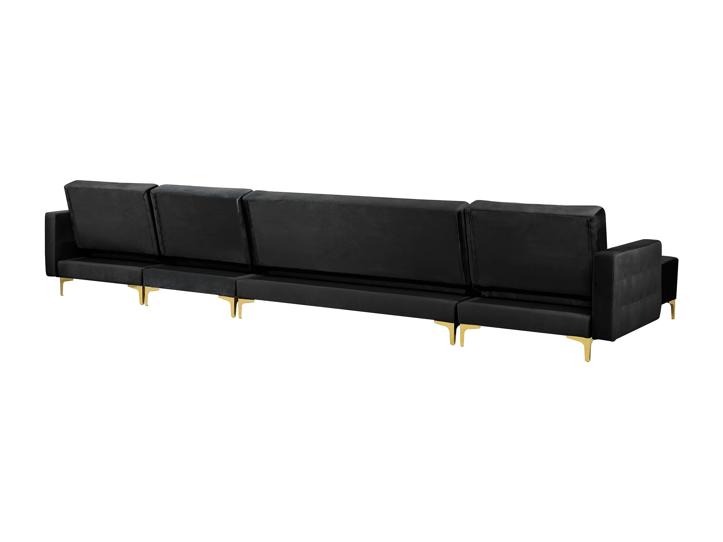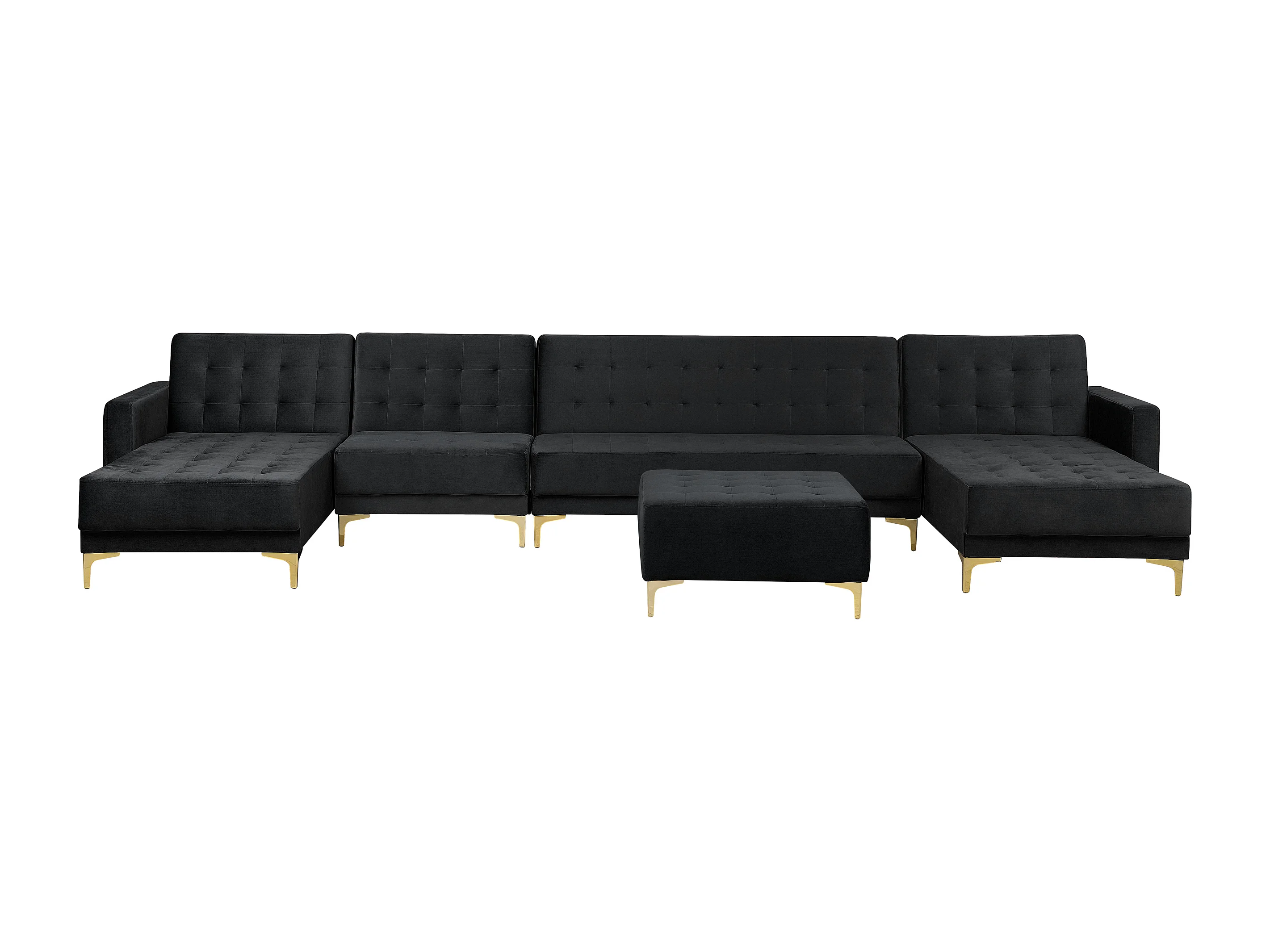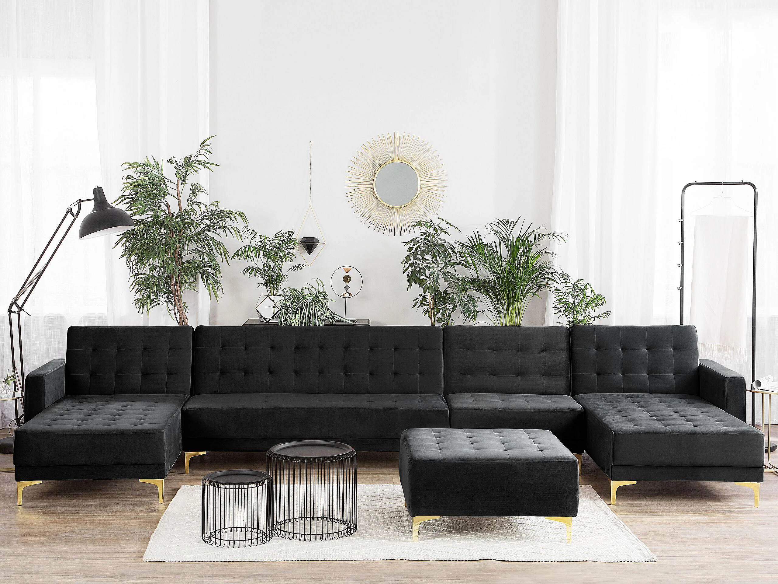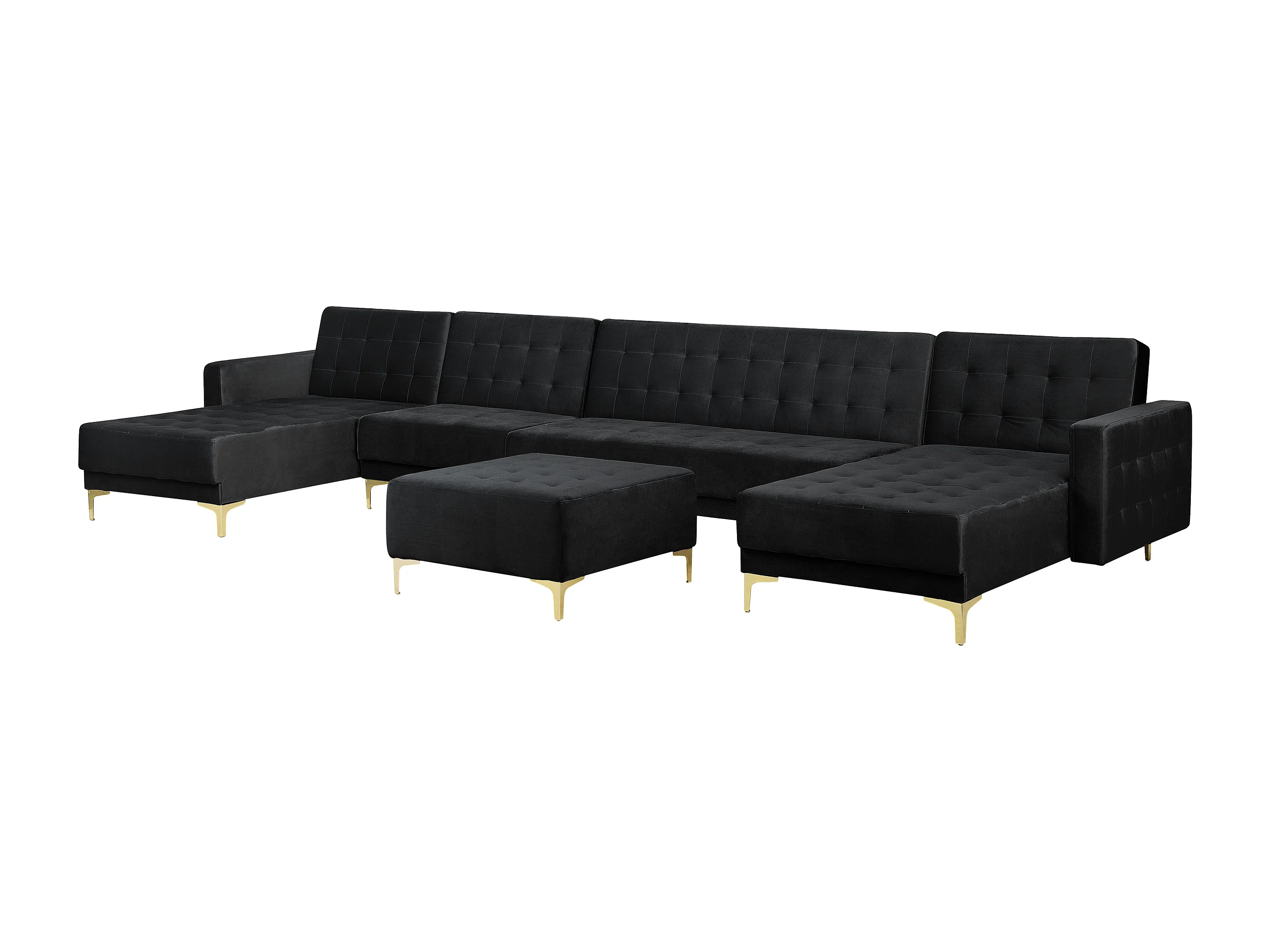 Canapé-lit modulable en forme de U ABERDEEN Velours Noir avec ottoman 6 places