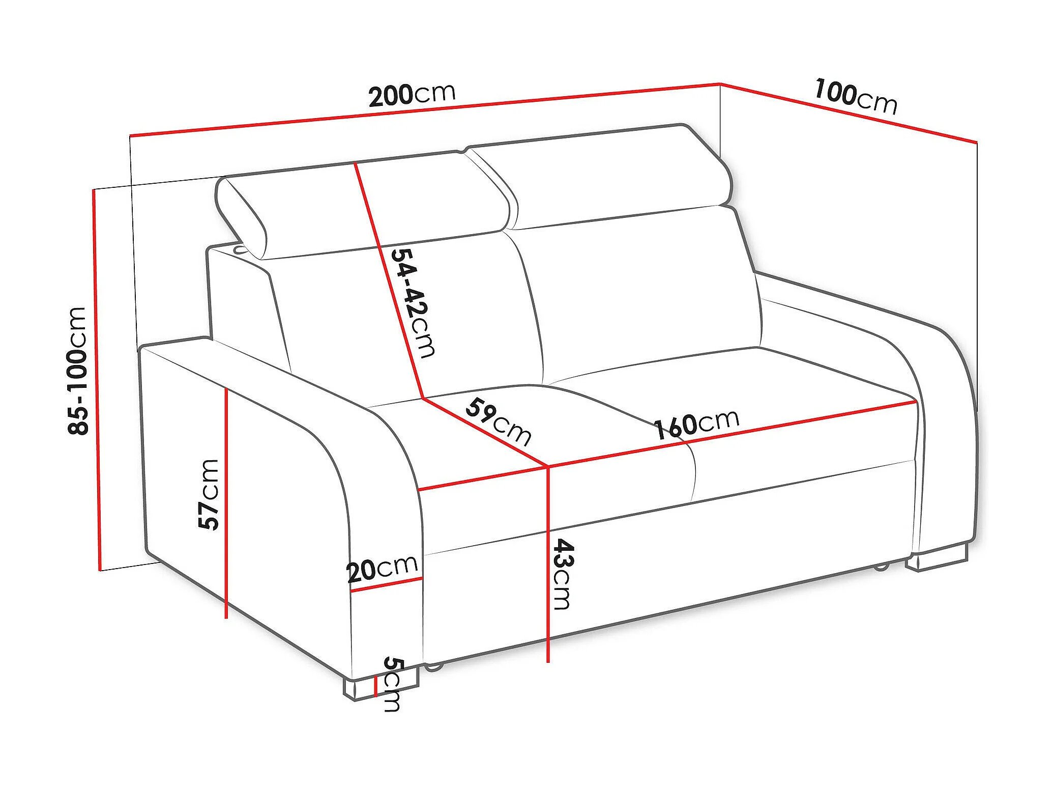 Canapé Etrcala 102, Jaune, 200x100x85cm, Tissu, Pieds: Bois|Plastique