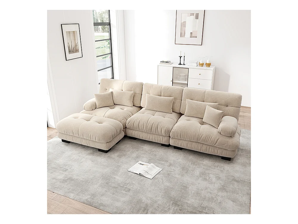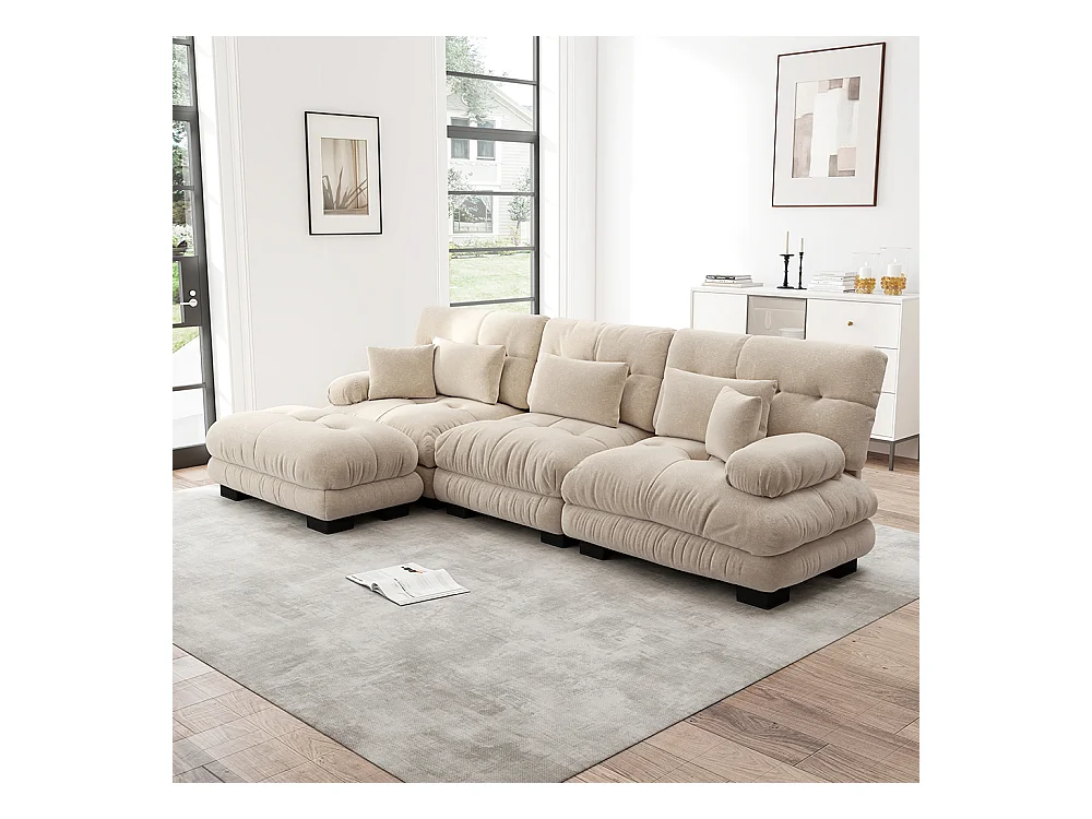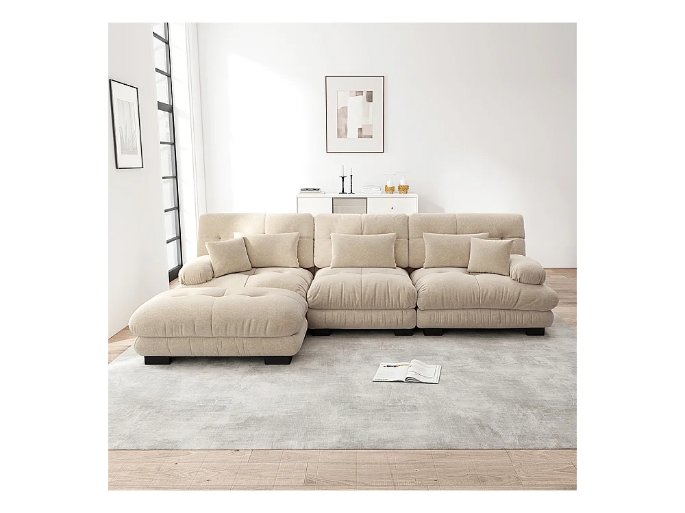 Canapé extra-large en L, adapté au salon, avec repose-pieds, velours côtelé, beige
