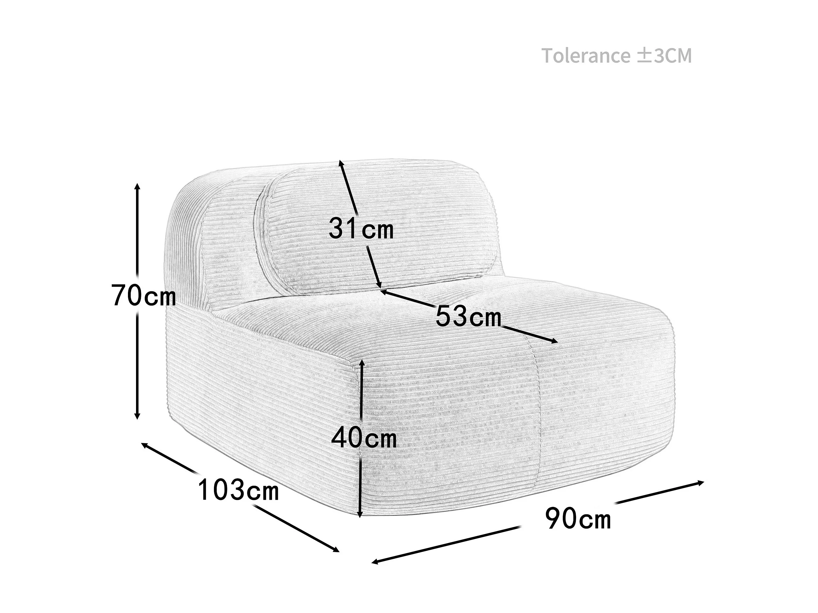 Canapé fauteuil modulable sans accoudoirs en velours côtelé noir 90x103cm