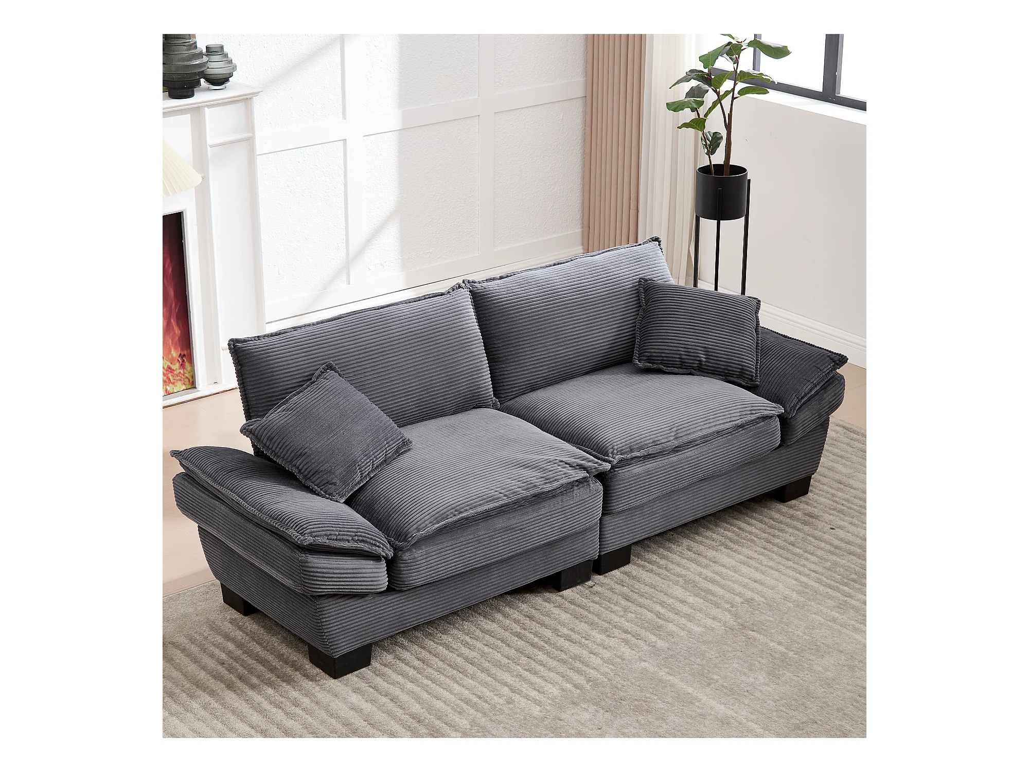 Canapé fixe 2 places en velours gris ultra-profond – assise moelleuse et accoudoirs rembourrés - 224x81x81cm