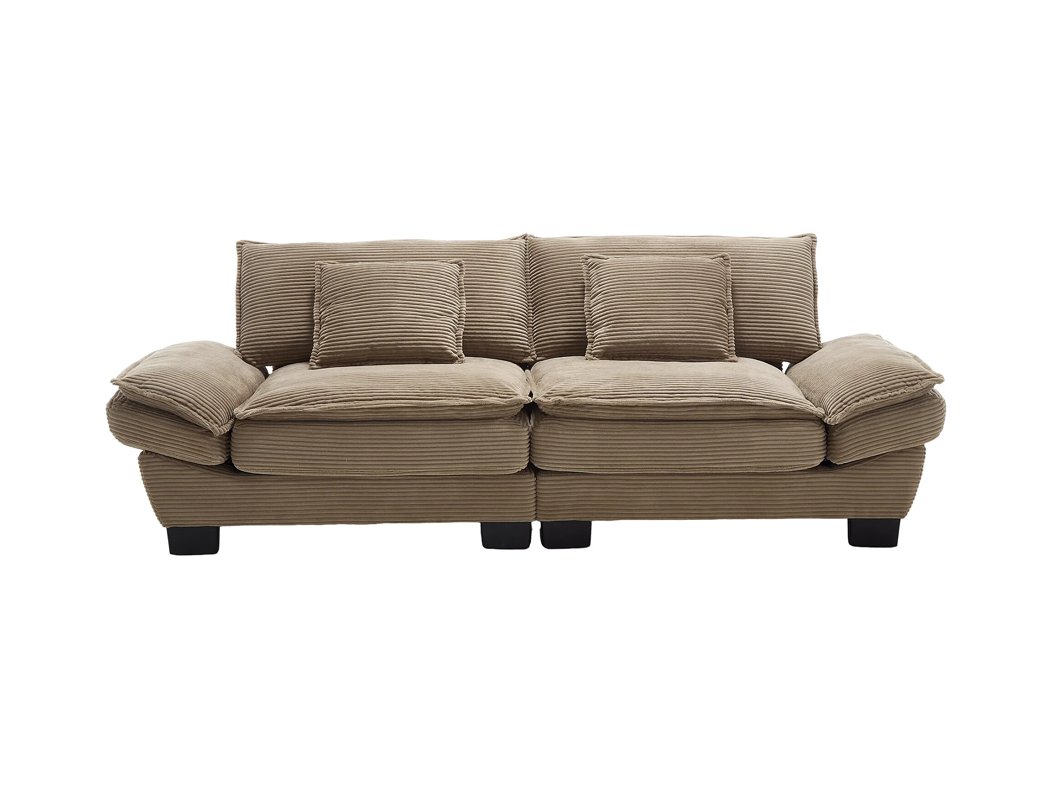 Canapé fixe 2 places en velours kaki ultra-profond – assise moelleuse et accoudoirs rembourrés - 224x81x81cm