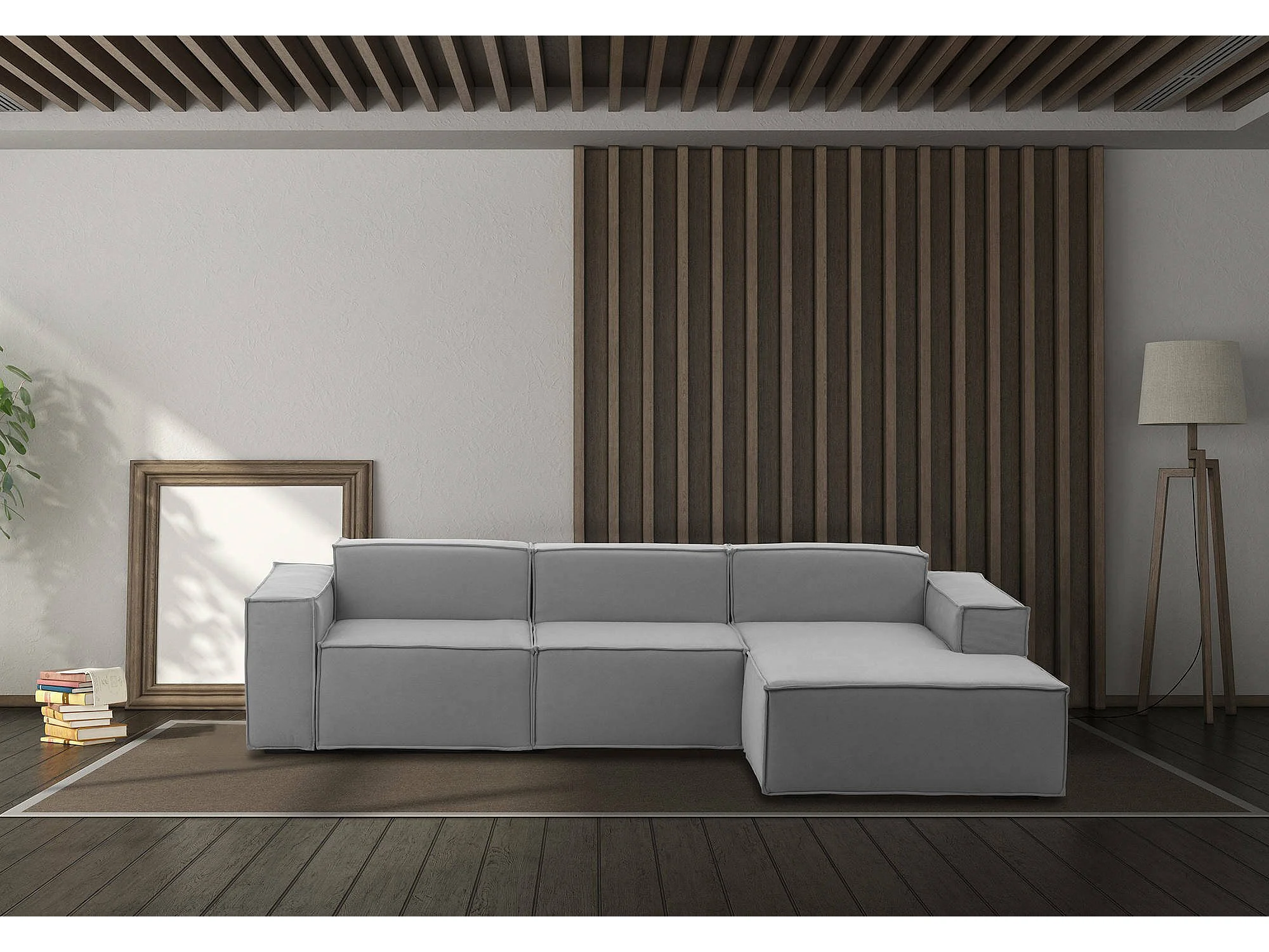 Canapé fixe Giovanna, canapé modulable 3 places avec péninsule droite, 100% Made in Italy, Canapé moderne en tissu, 300x170h70 cm, Gris