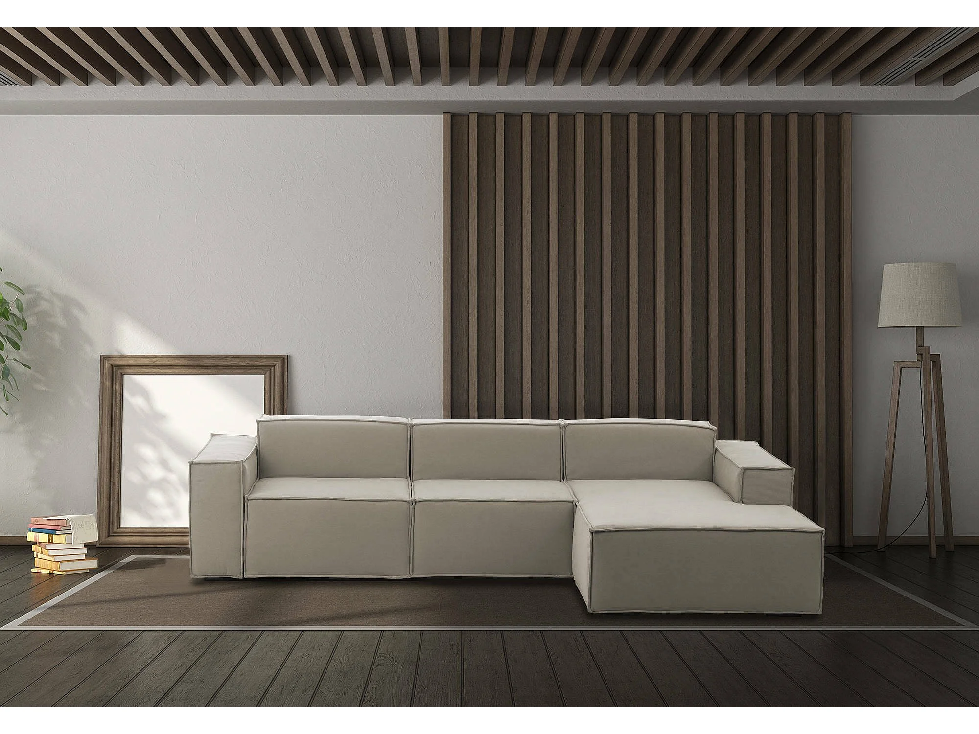 Canapé fixe Giovanna, canapé modulable 3 places avec péninsule droite, 100% Made in Italy, Canapé moderne en tissu, 300x170h70 cm, Taupe