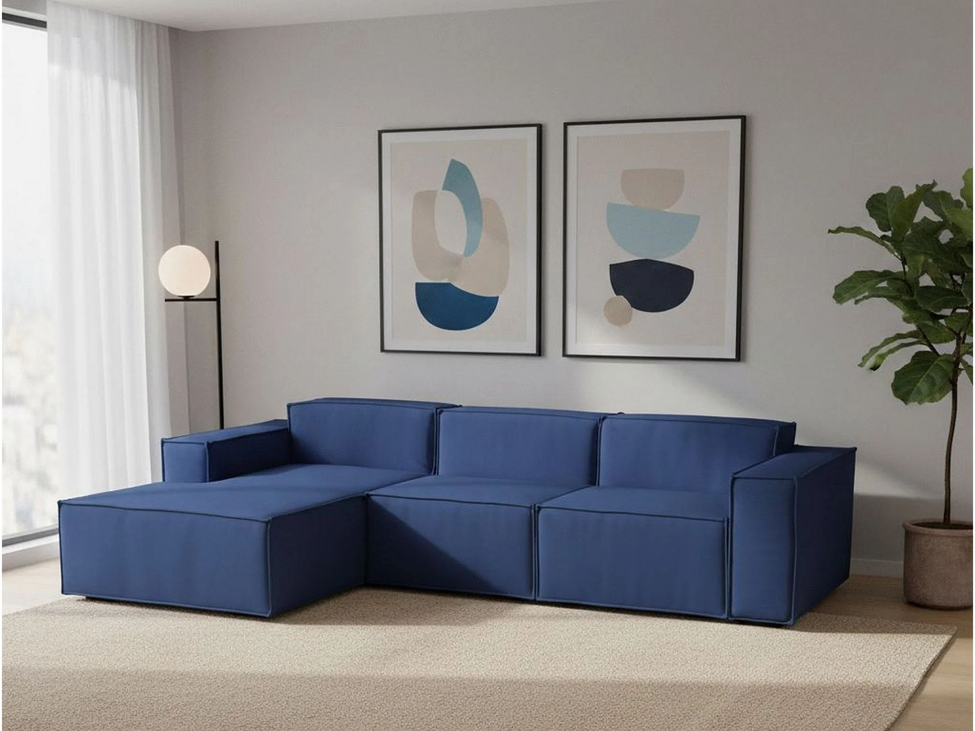 Canapé fixe Jessica, canapé modulable 3 places avec péninsule gauche, 100% Made in Italy, Canapé moderne en tissu, 300x170h70 cm, Bleu