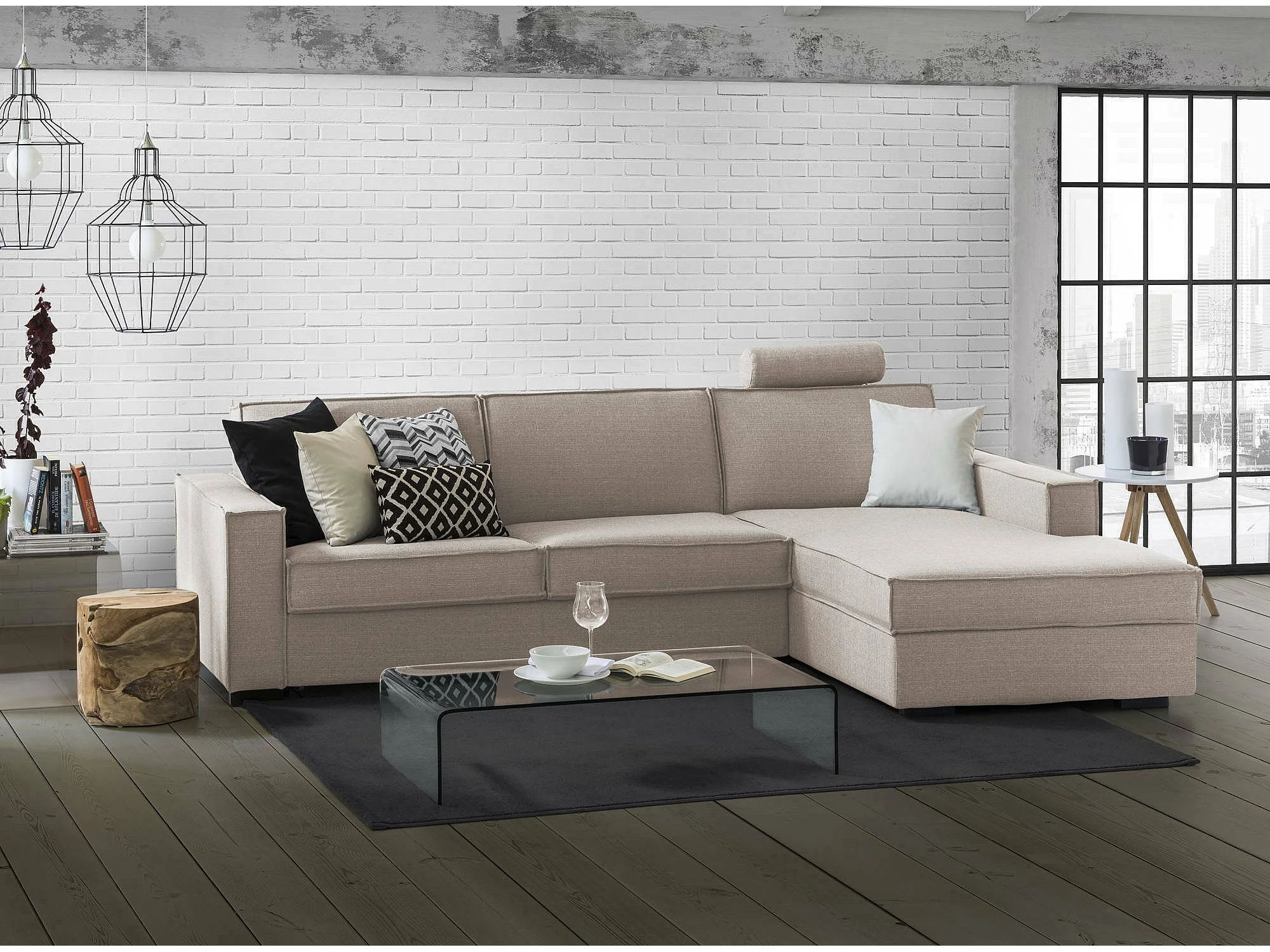 Canapé fixe Maia, Canapé d'angle, 100% Made in Italy, Canapé de salon avec, Péninsule conteneur droite, avec accoudoirs fins, Cm 260x95h90, Taupe