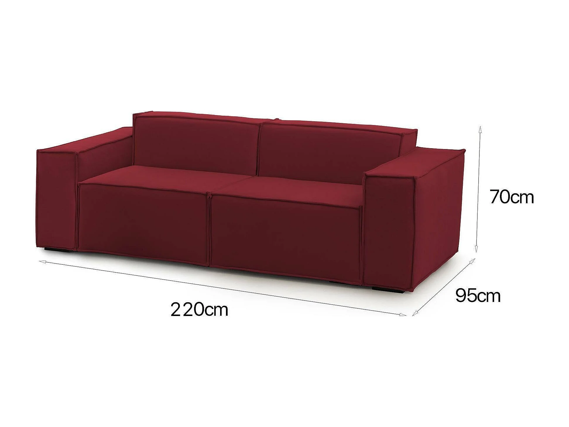 Canapé fixe Paola, canapé modulable linéaire 2 places, 100% Made in Italy, Canapé de salon moderne en tissu, 220x95h70 cm, Rouge