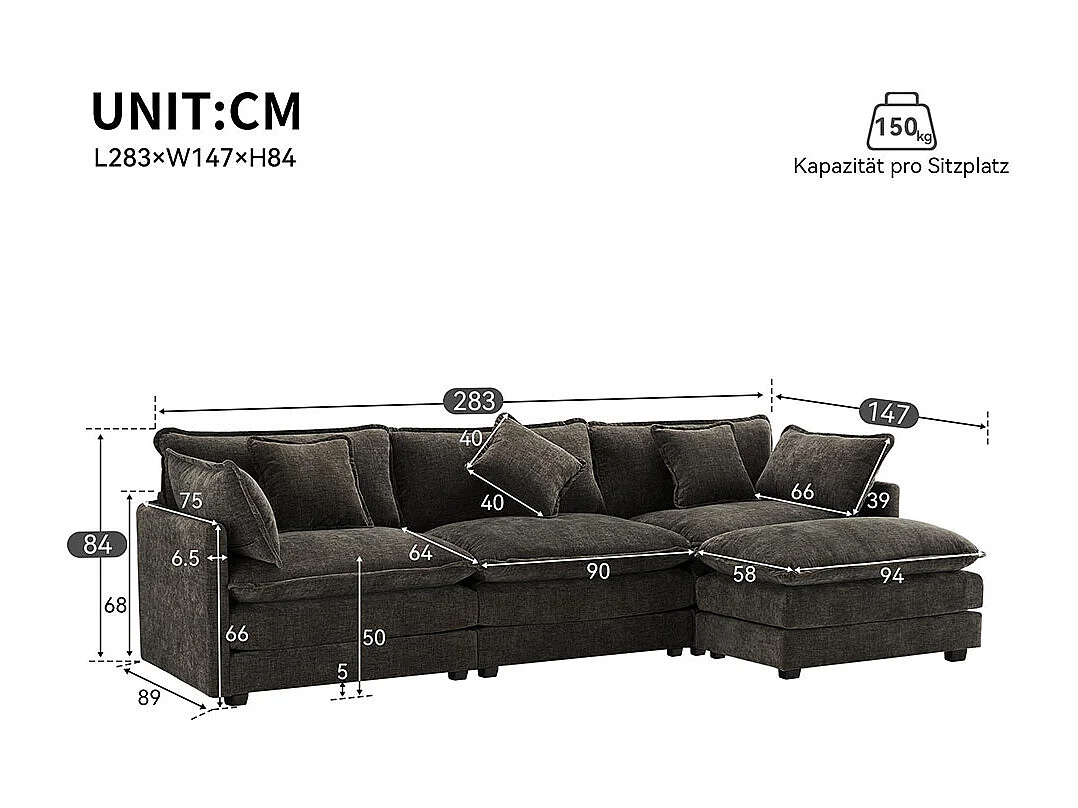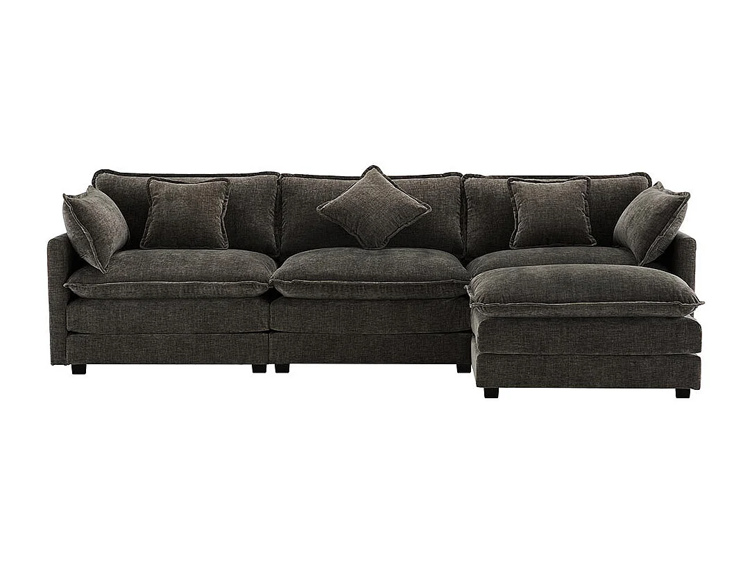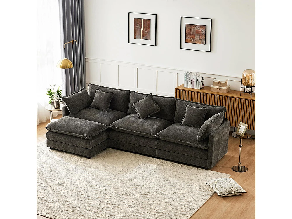 Canapé fixe rembourrés chenille 3 places avec repose-pieds canapé d'angle en L gris