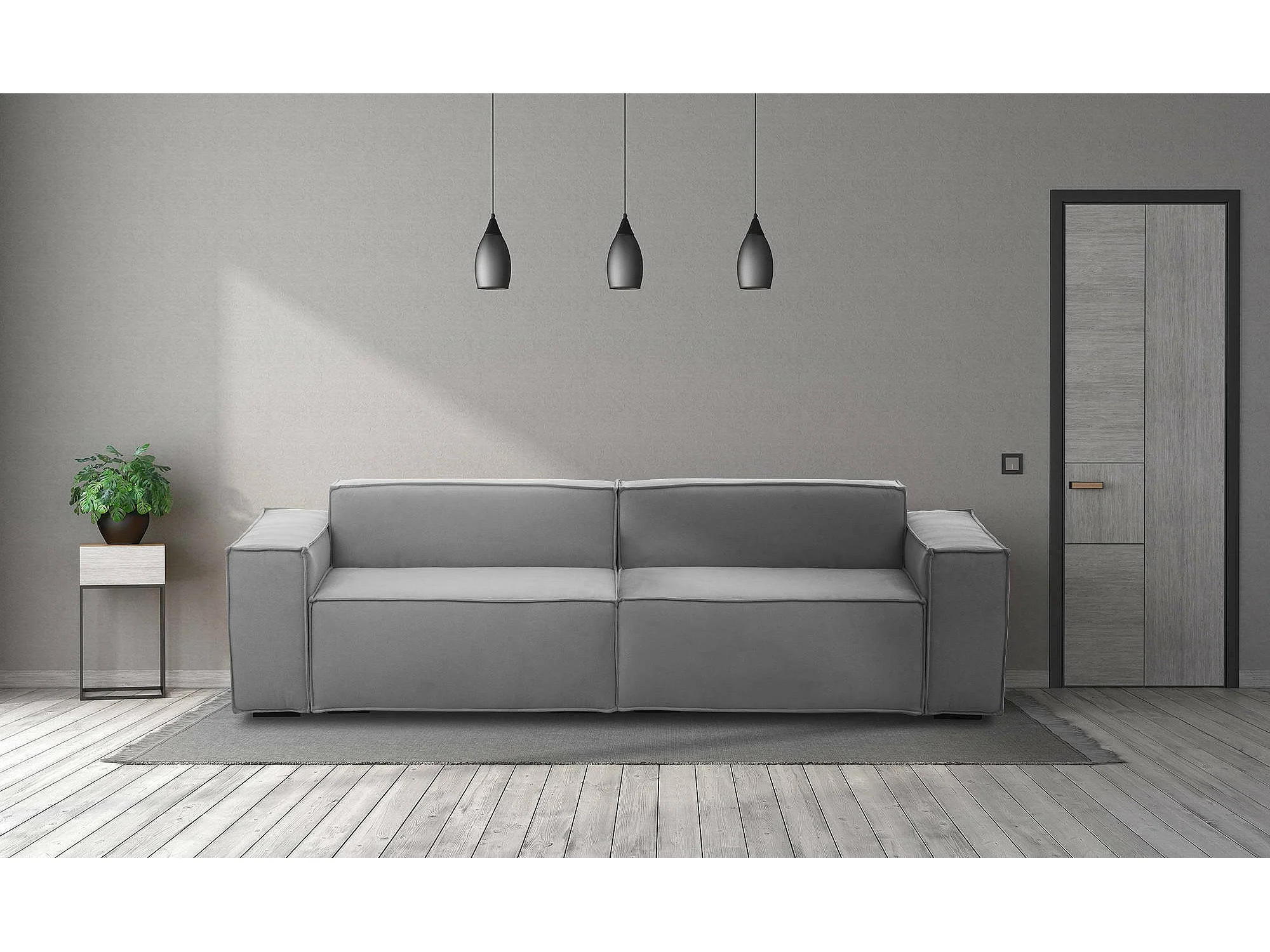 Canapé fixe Simona, canapé modulable linéaire 3 places, 100% Made in Italy, Canapé de salon moderne en tissu, 260x95h70 cm, Gris