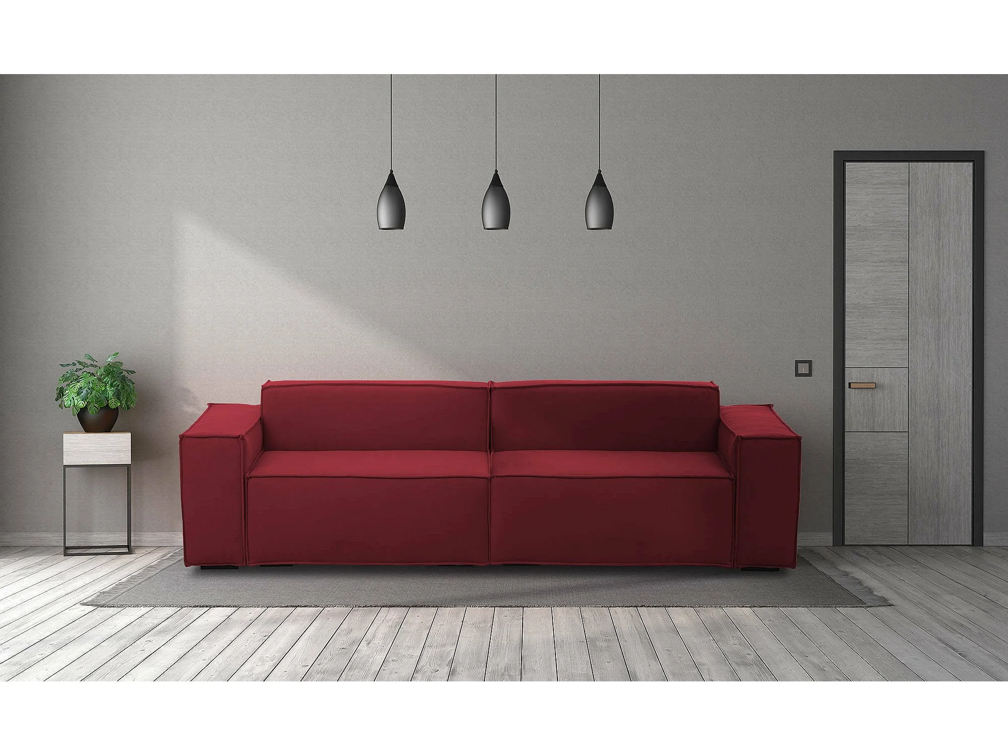 Canapé fixe Simona, canapé modulable linéaire 3 places, 100% Made in Italy, Canapé de salon moderne en tissu, 260x95h70 cm, Rouge