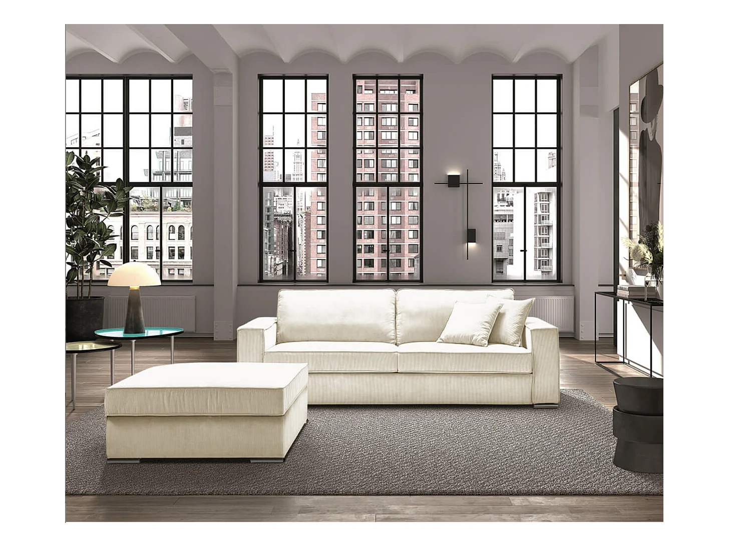 Canapé fixe velours côtelé avec 2 Coussins Kleman-Couleur Blanc-1 place fauteuil