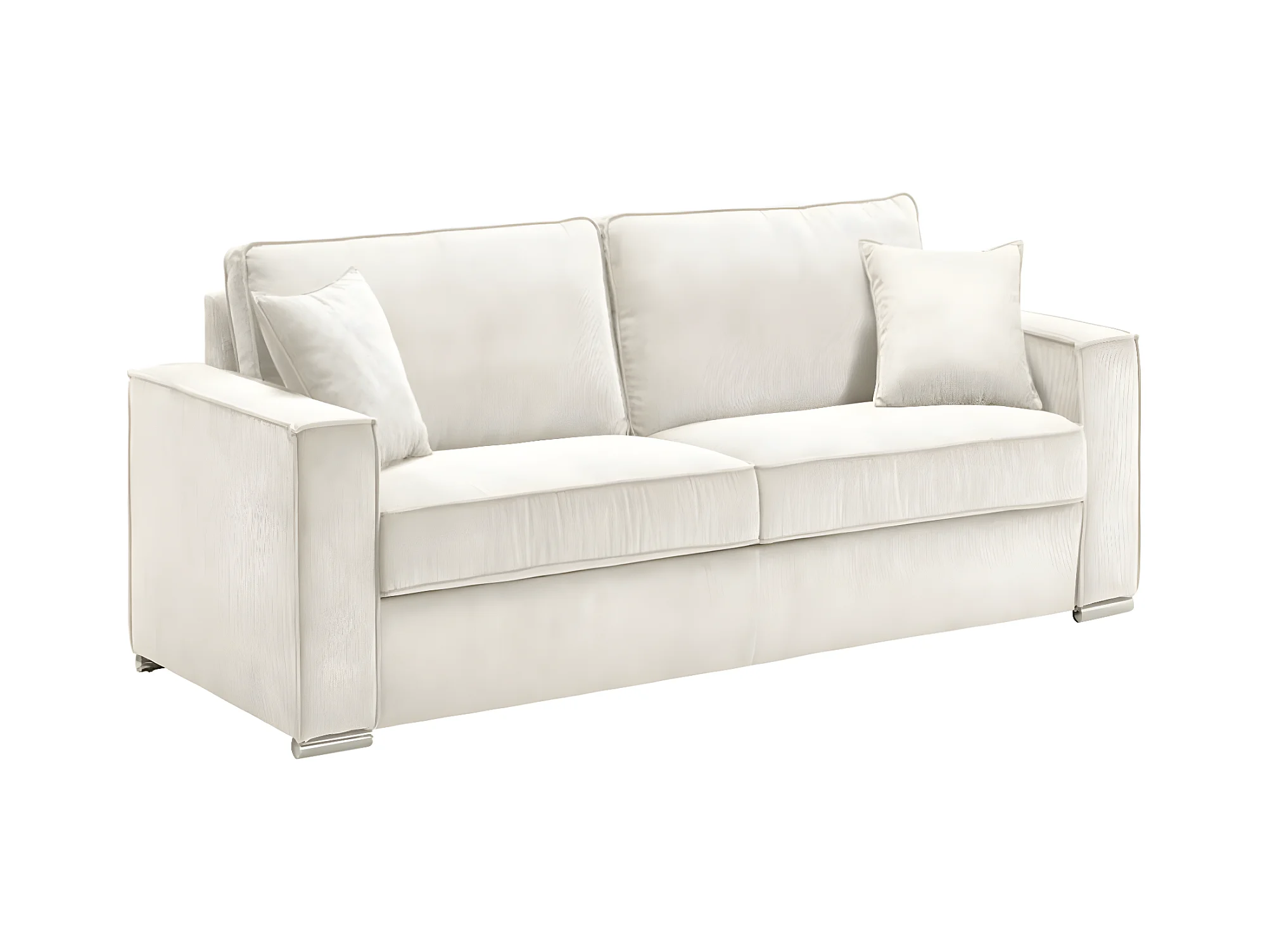 Canapé fixe velours côtelé avec 2 Coussins Kleman-Couleur Blanc-2 places