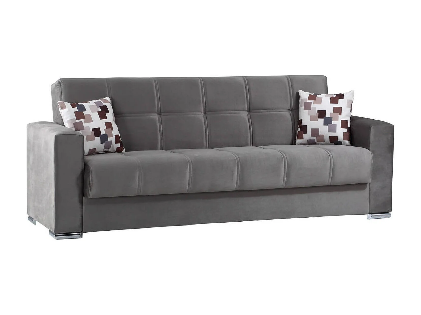 Canapé Francisco, Canapé conteneur 3 places linéaire, Canapé de salon en tissu rembourré avec ouverture clic-clac, 226x85h91 cm, Gris