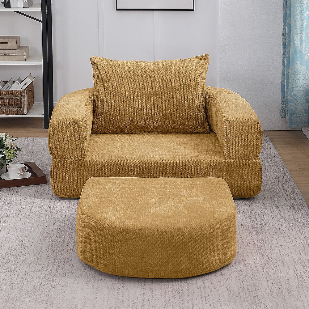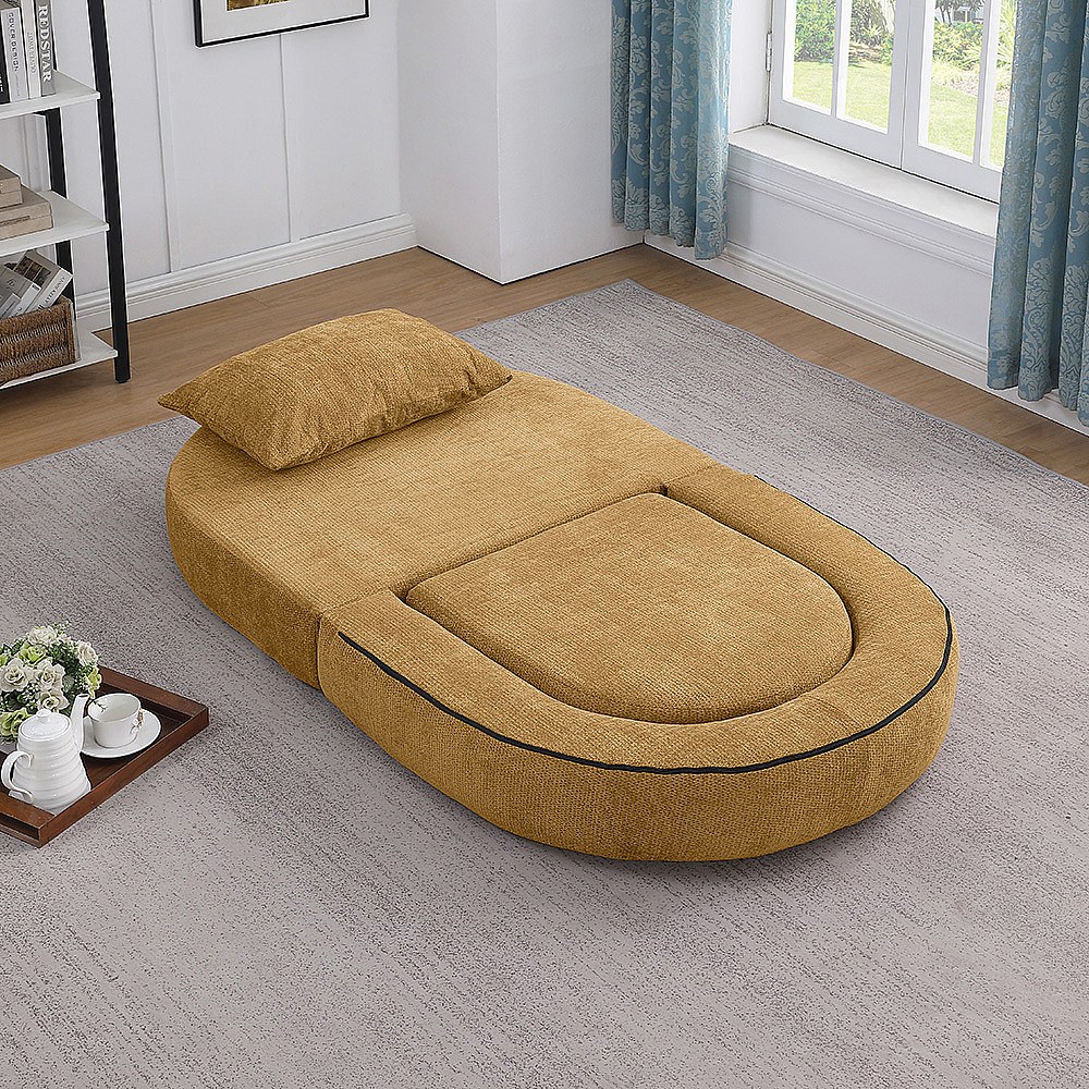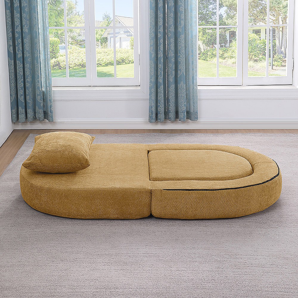 Canapé futon convertible petit deux places moderne avec dossier réglable pour petits espaces salon appartement bureau jaune