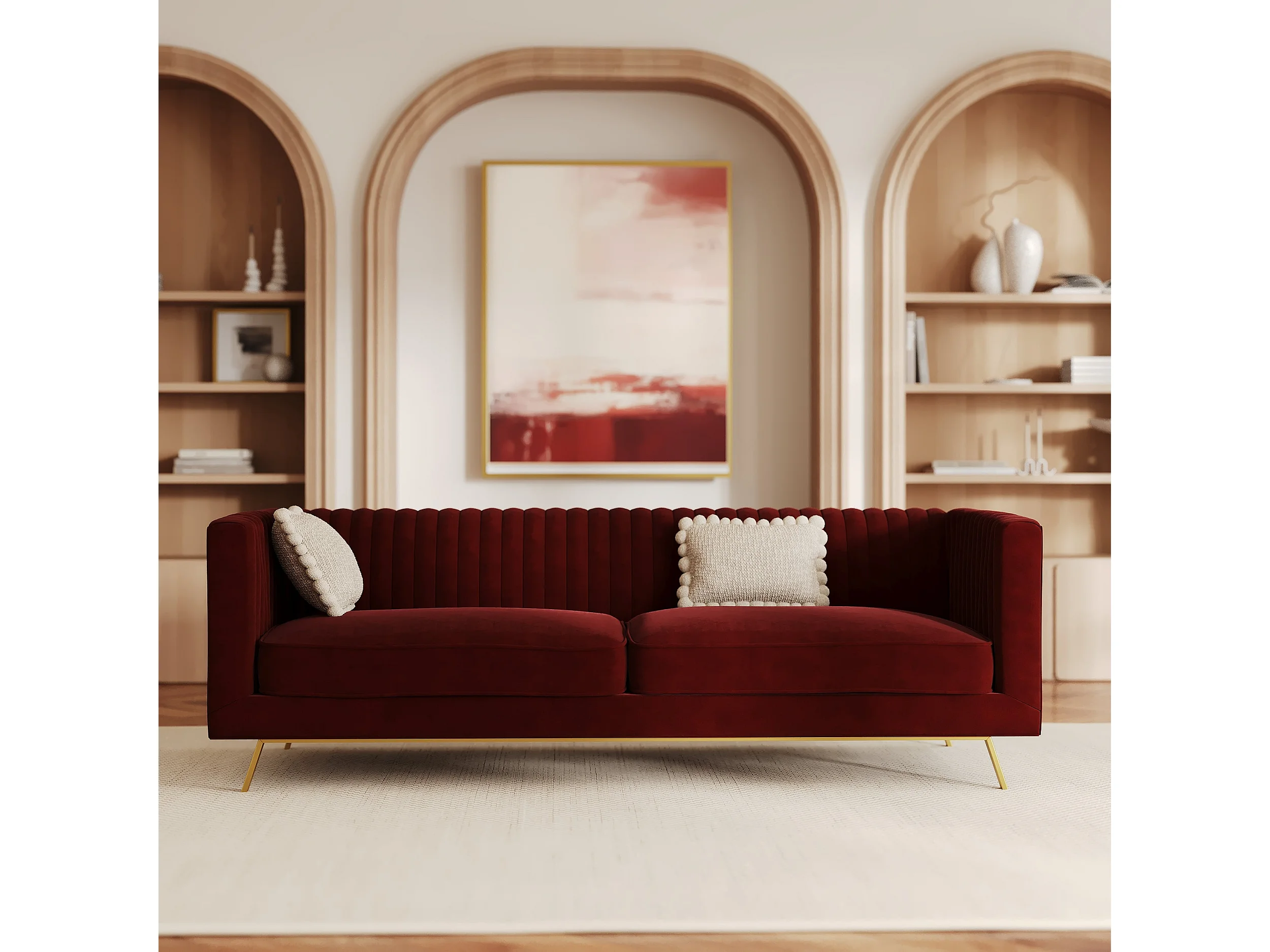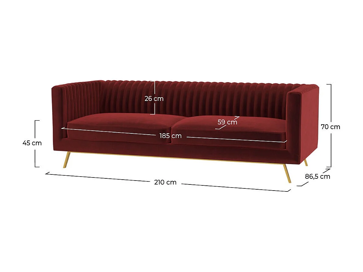 Canapé 3 places en velours bordeaux - Gatsby