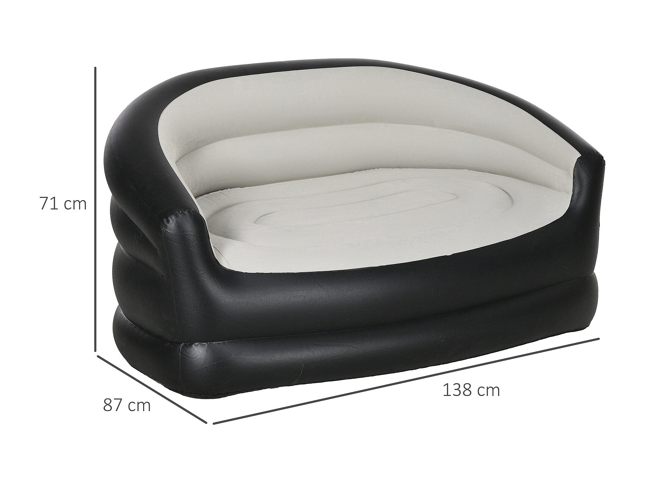 Canapé gonflable pour l'extérieur 2 places canapé d'air dim. 138L x 87l x 71H cm gris noir
