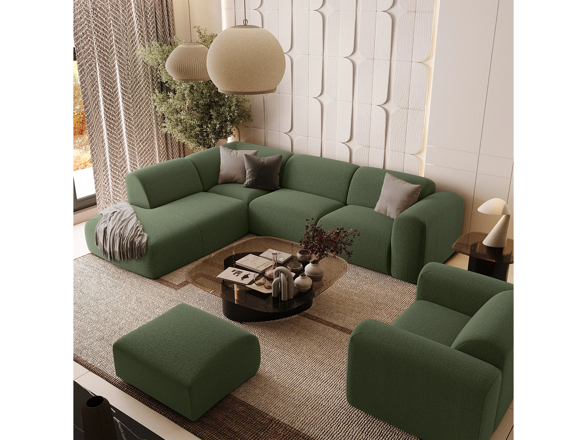 Canapé grand angle gauche 5 places tissu tramé vert olive MYRA