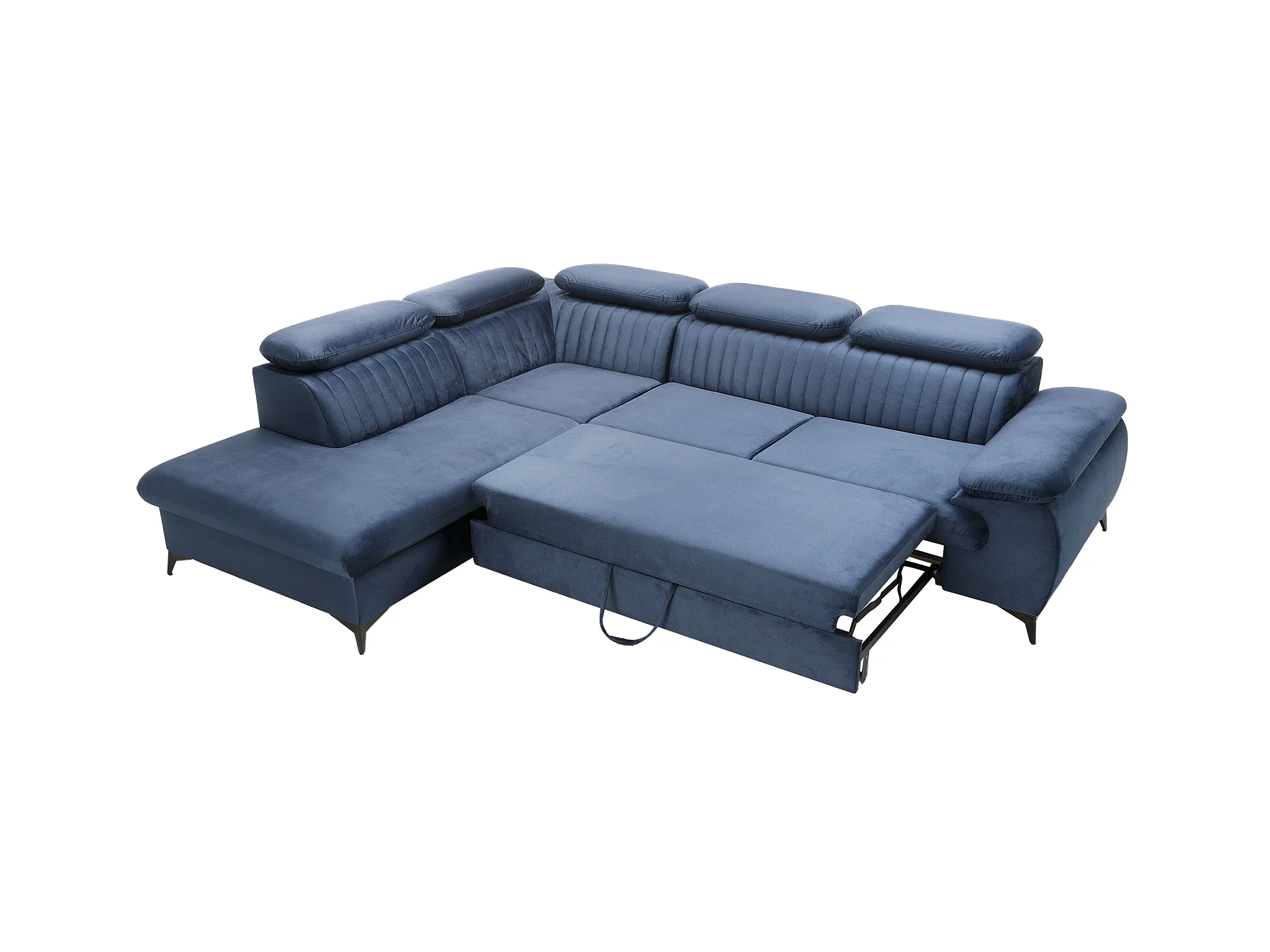 Canapé grand angle gauche convertible en velours bleu nuit SAMARA de Pascal Morabito
