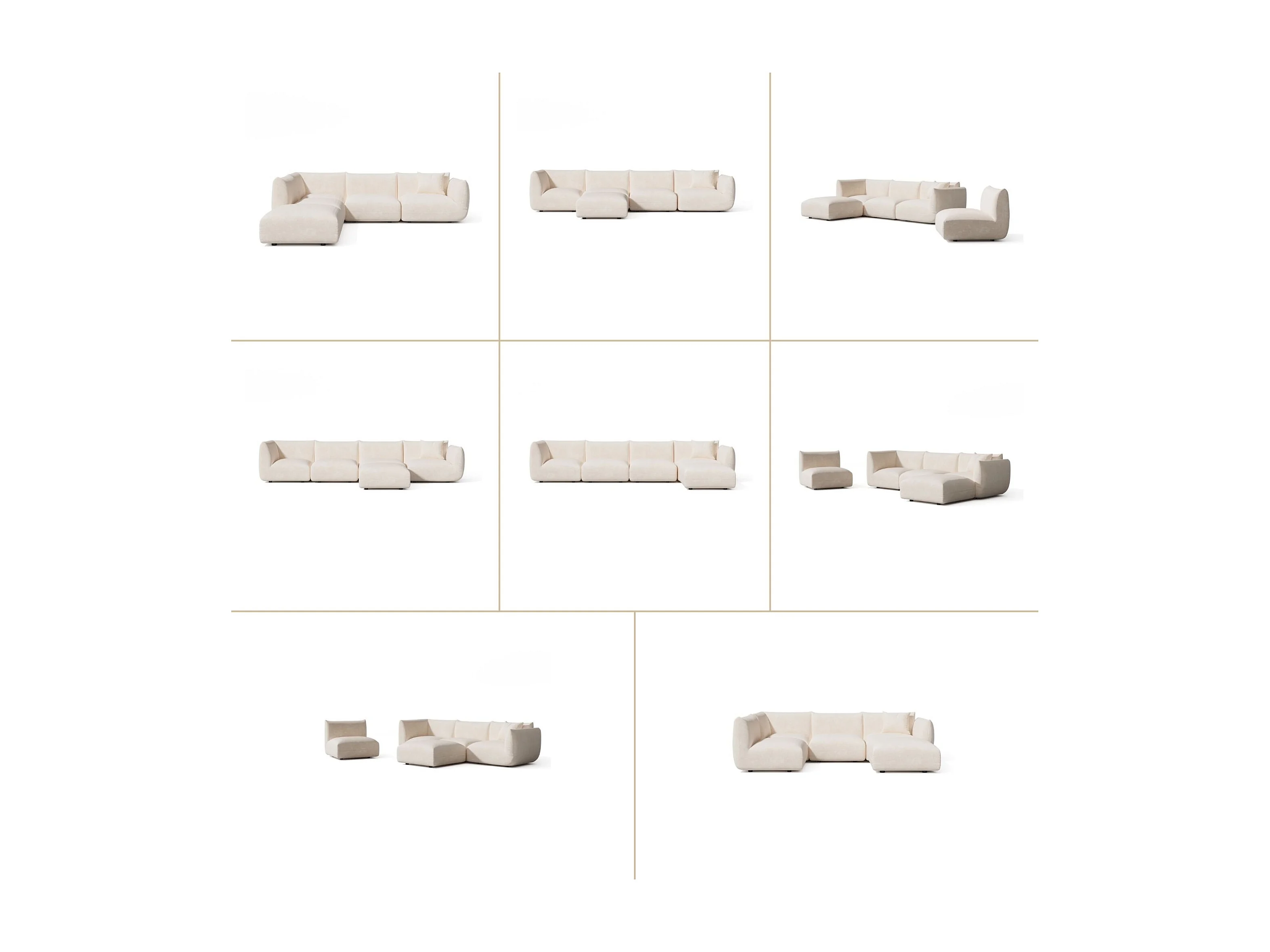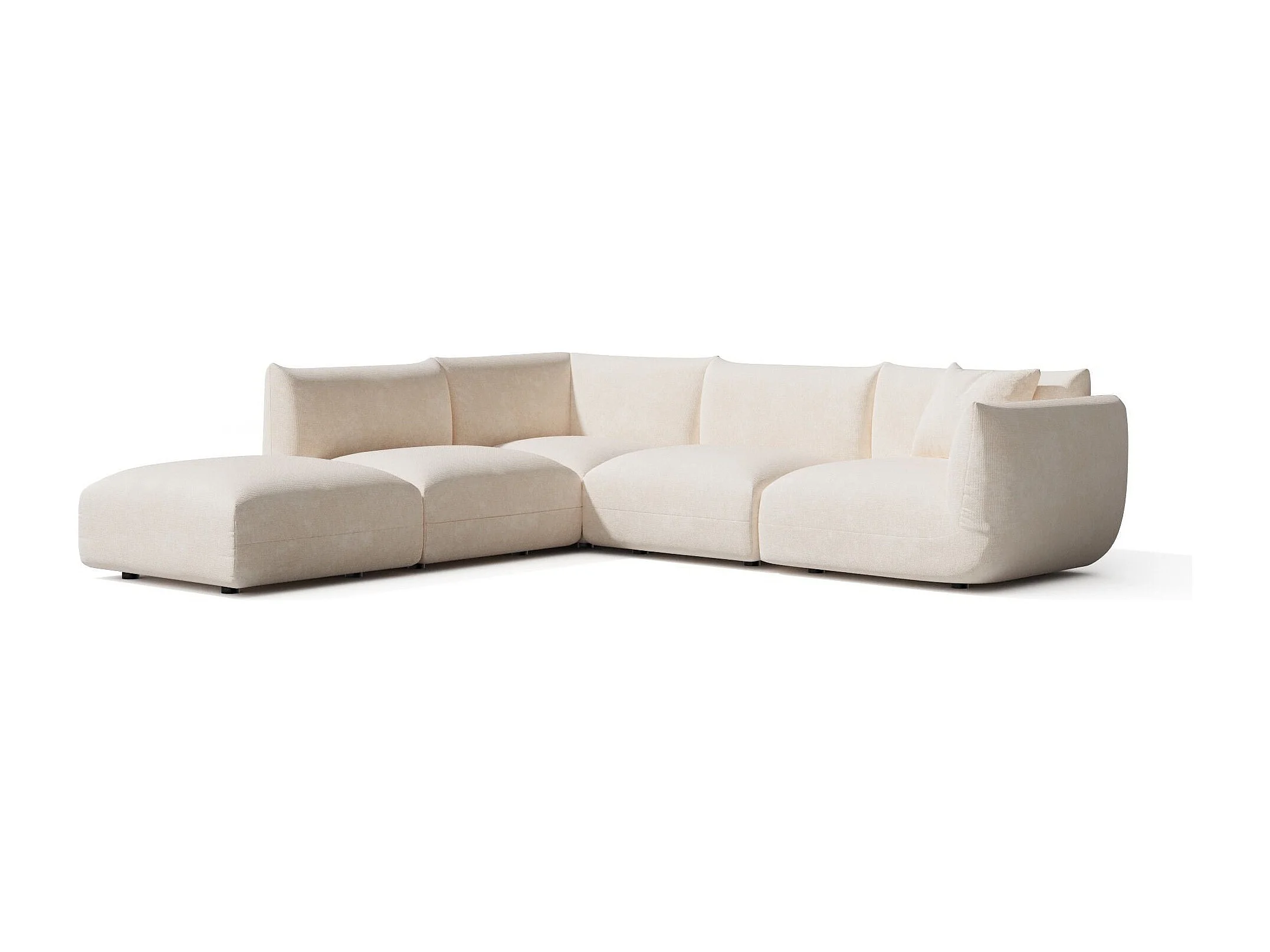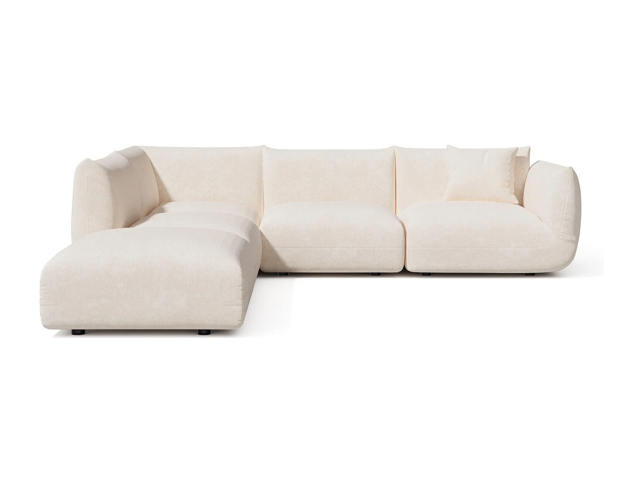 Canapé grand angle gauche modulable 7 places velours chenillé crème NOOMA