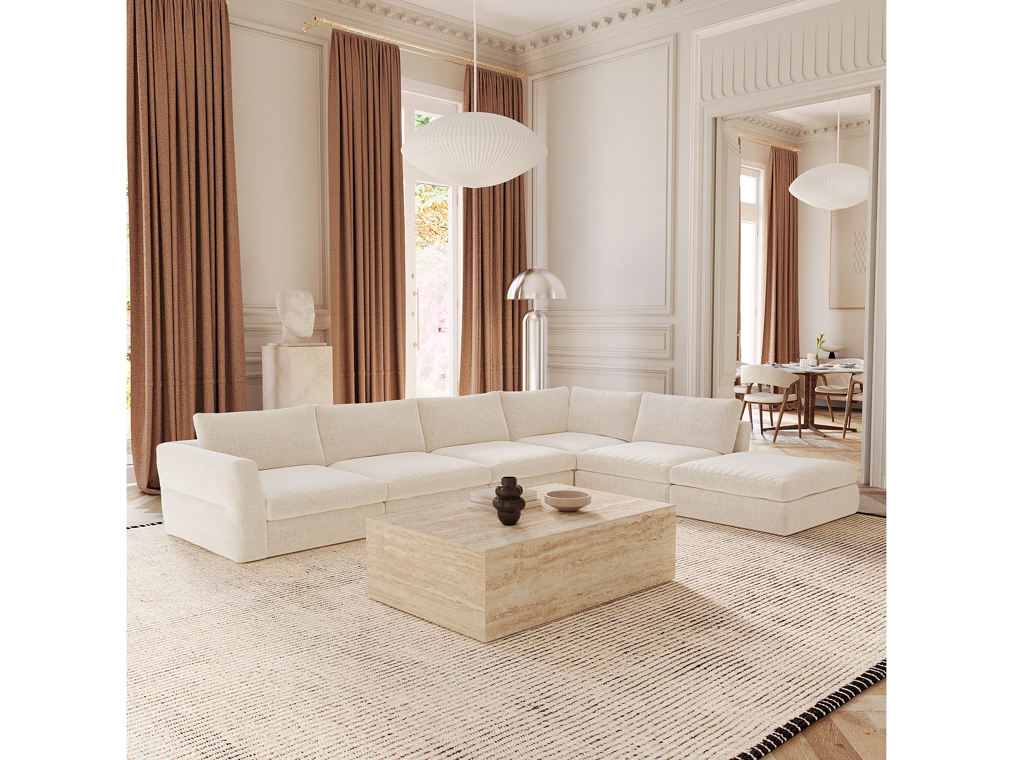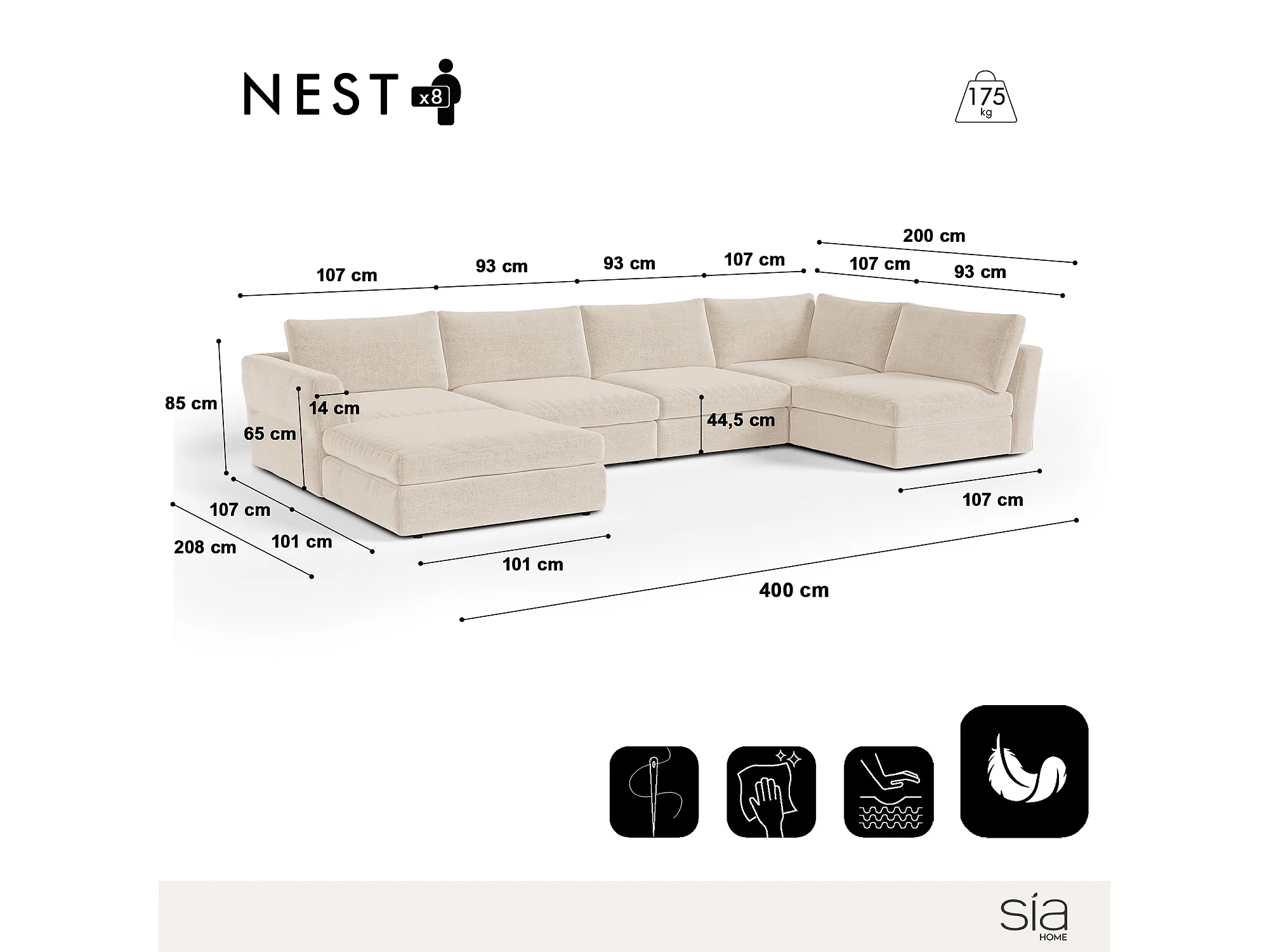 Canapé grand angle modulable 8 places tissu tramé toucher doux beige NEST