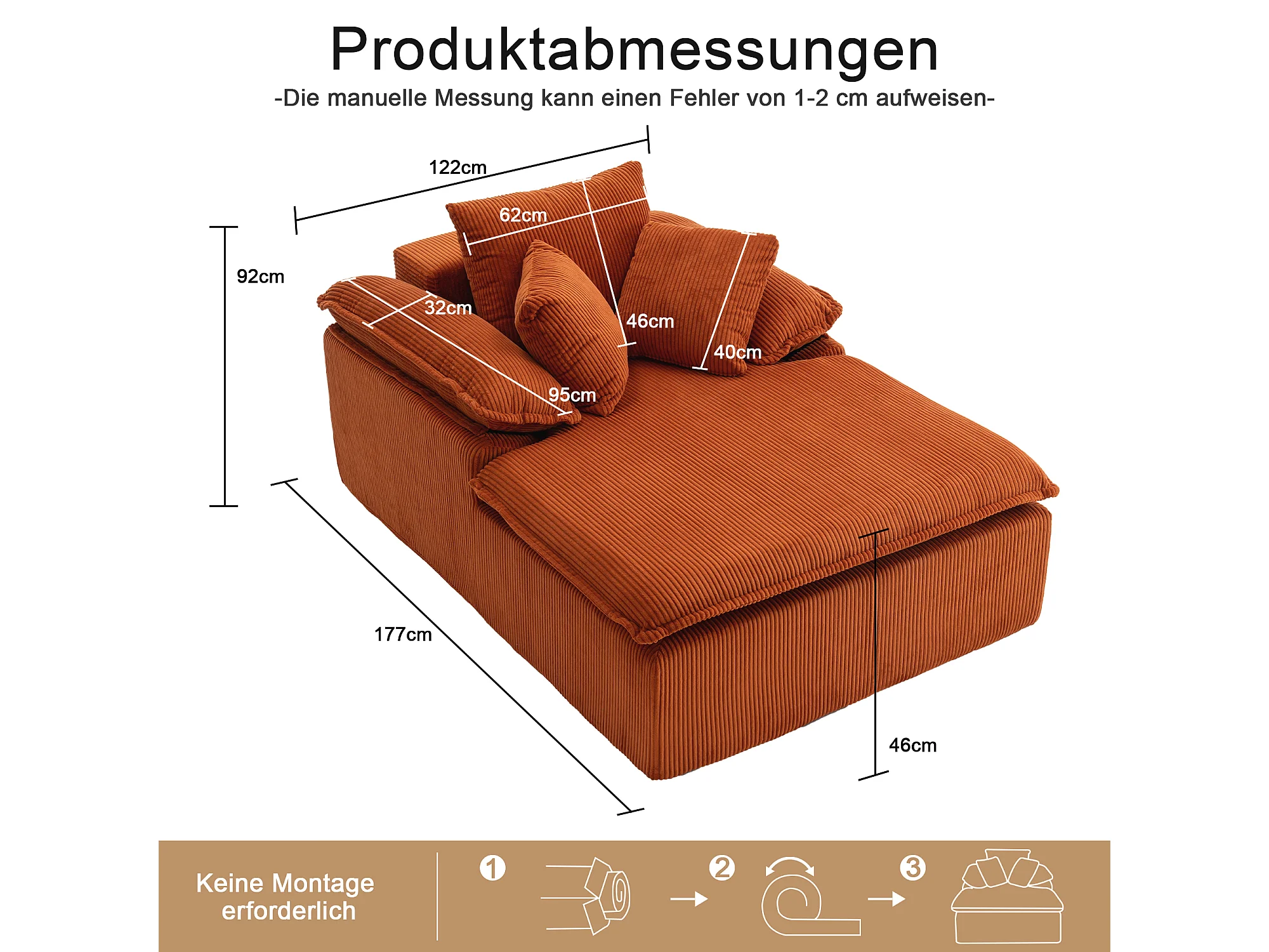 Canapé inclinable 1 place - Fauteuil lounge en velours côtelé - Sans montage - Couleur orange
