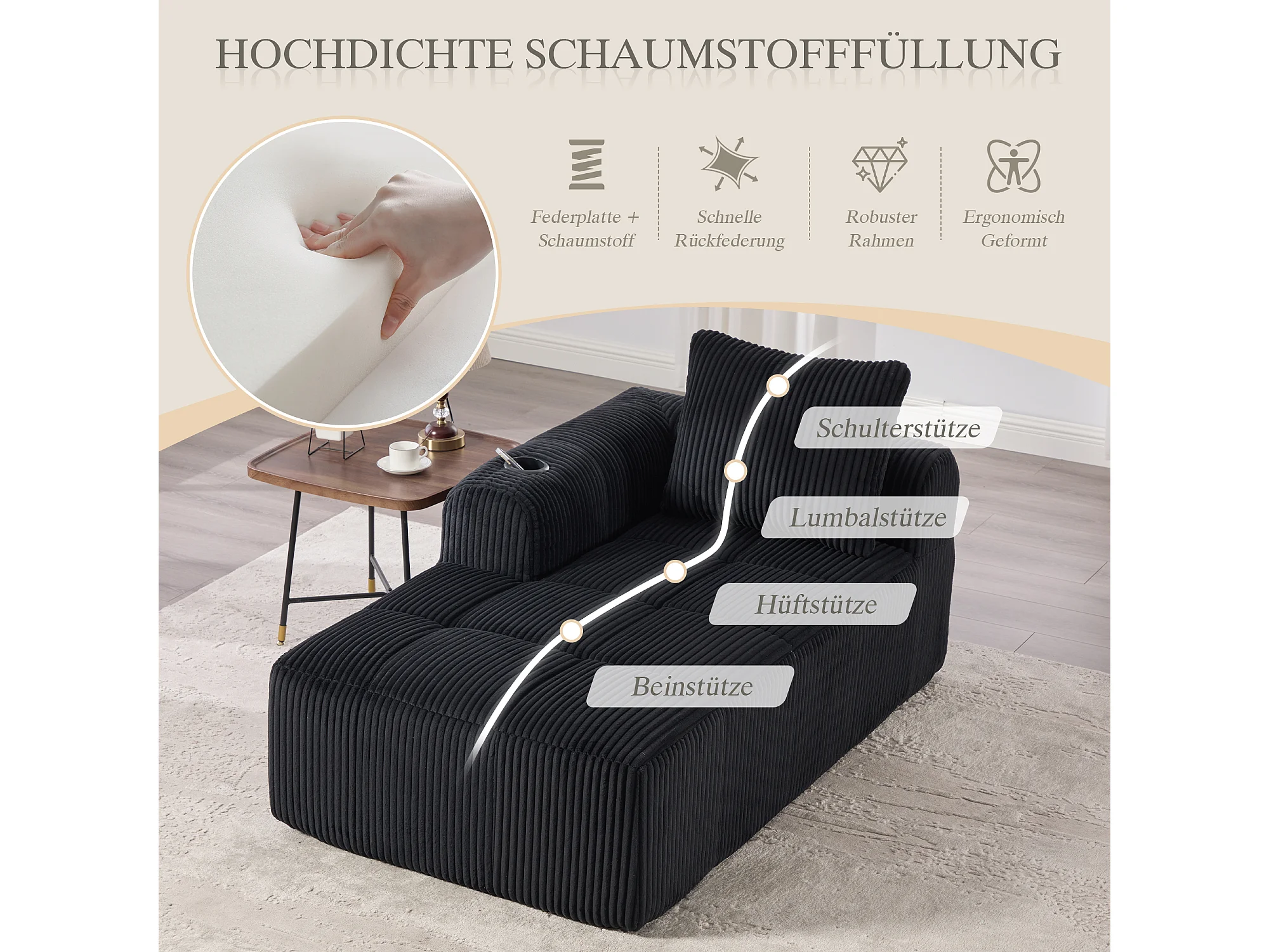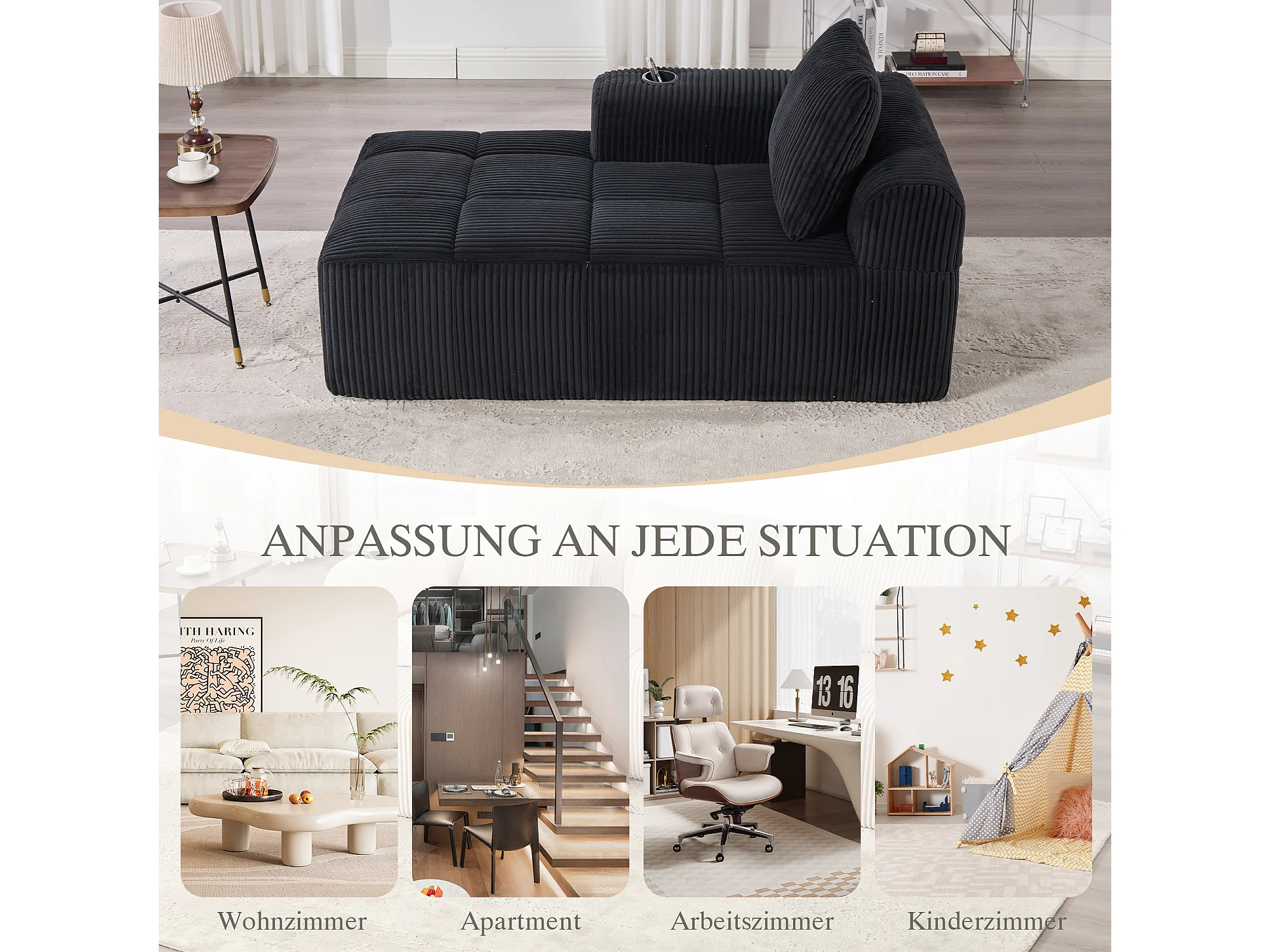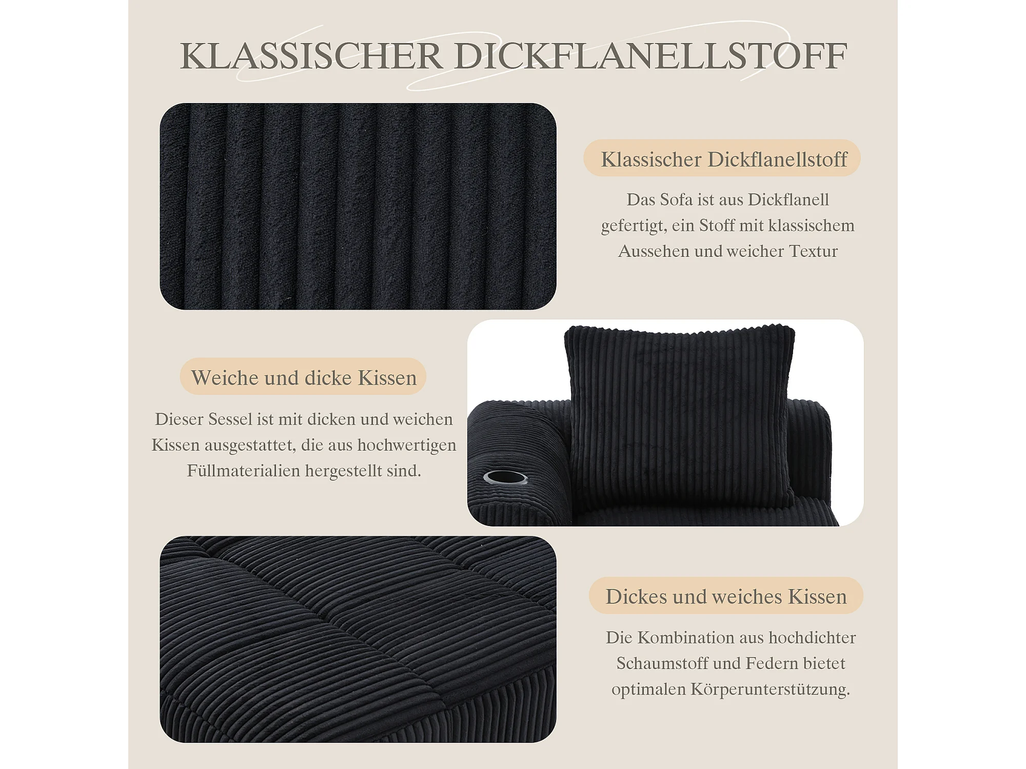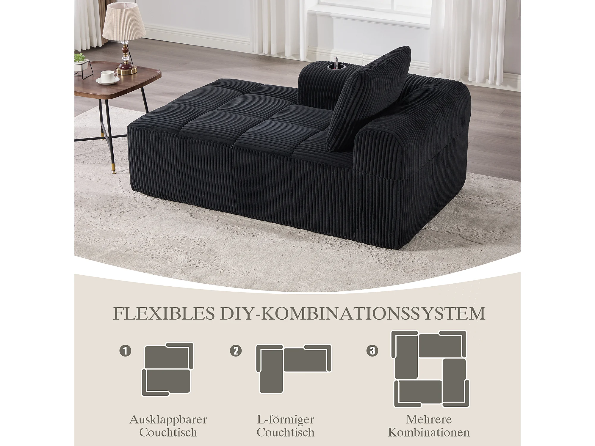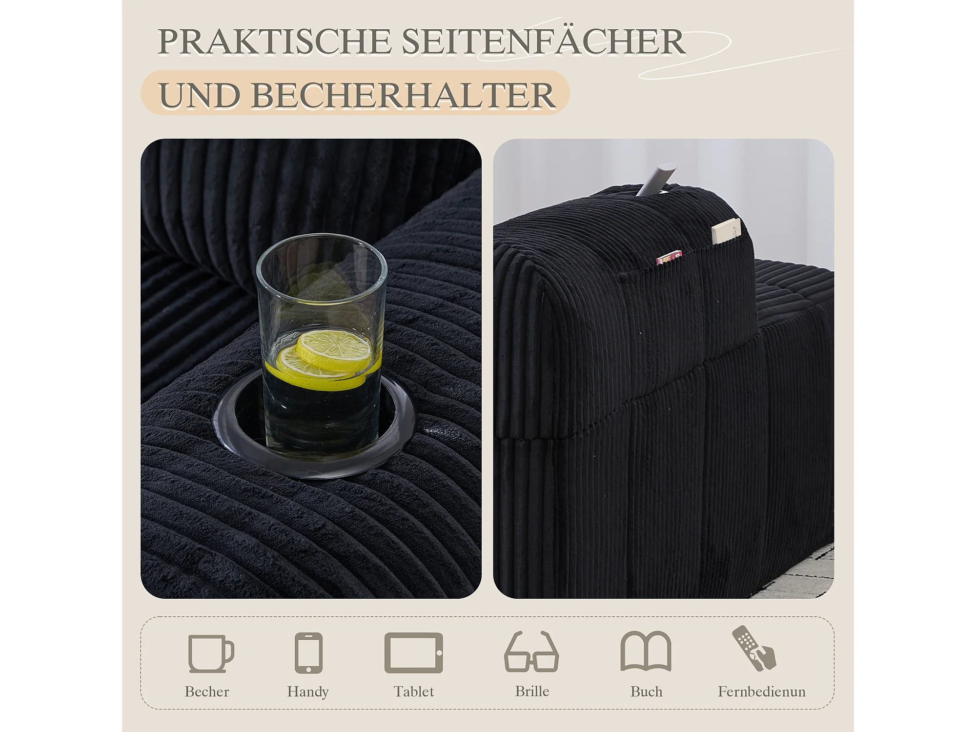 Canapé inclinable confortable - 158 x 93 x 61 cm - aucun assemblage requis - avec coussins de dossier + poche - velours - noir