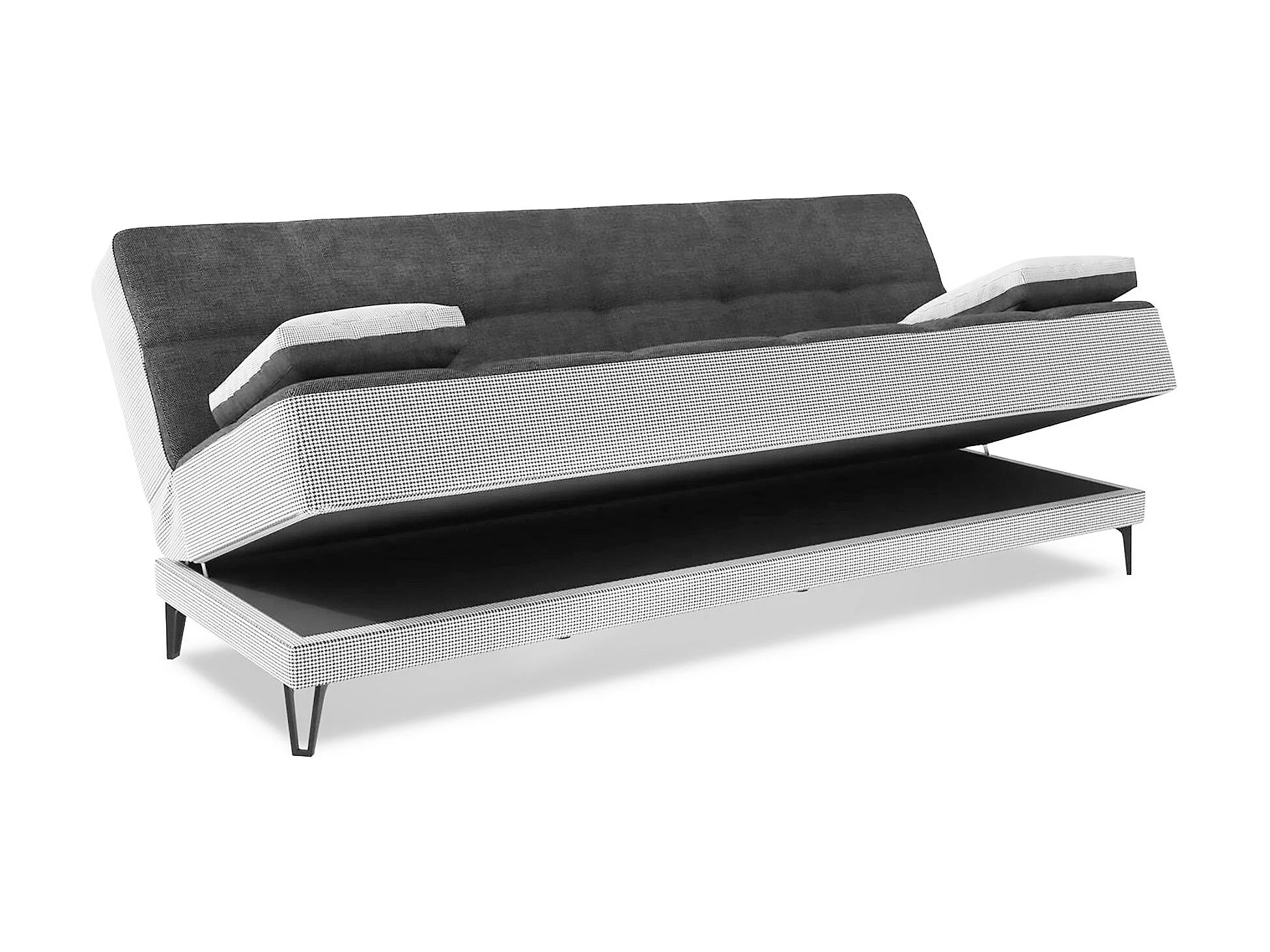 Canapé Jordi, Canapé 3 places avec pieds en métal noir, Canapé de salon en tissu rembourré avec ouverture clic-clac, 190x87h97 cm, Gris