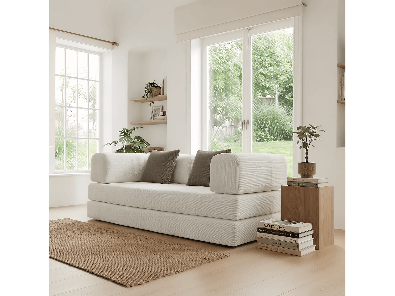 Canapé Kaia Convertible - blanc/marron