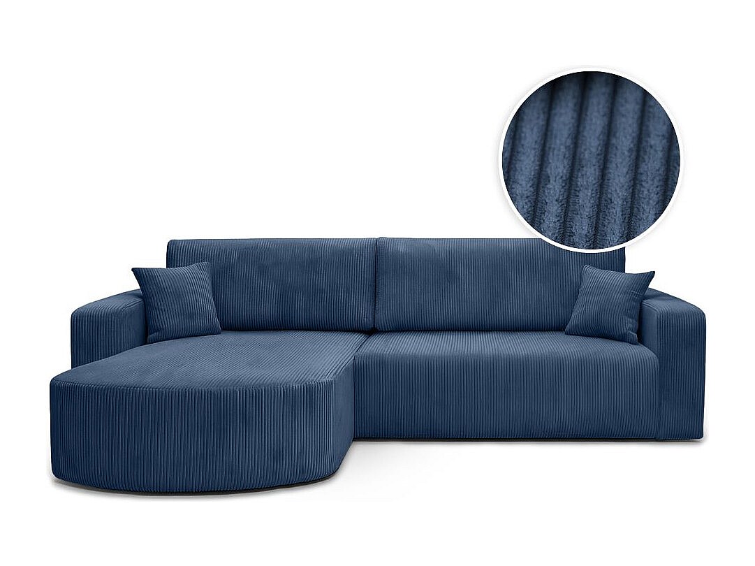 Canapé KIARA d'angle réversible convertible 4 places en velours côtelé - Bleu foncé