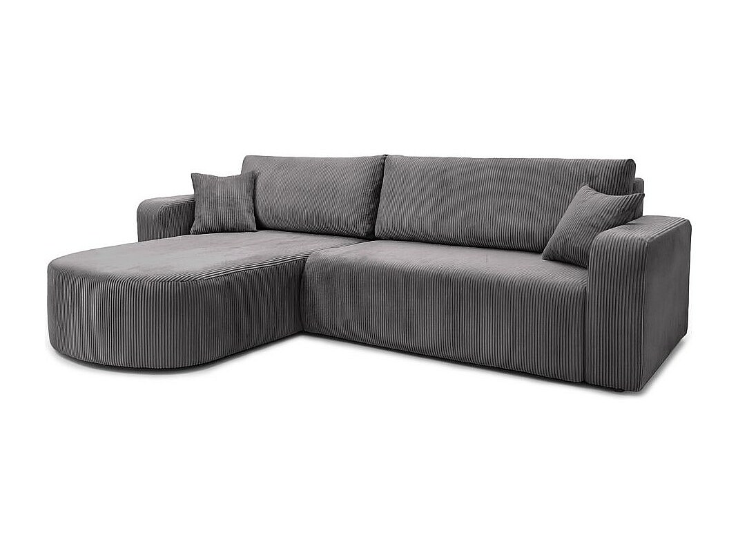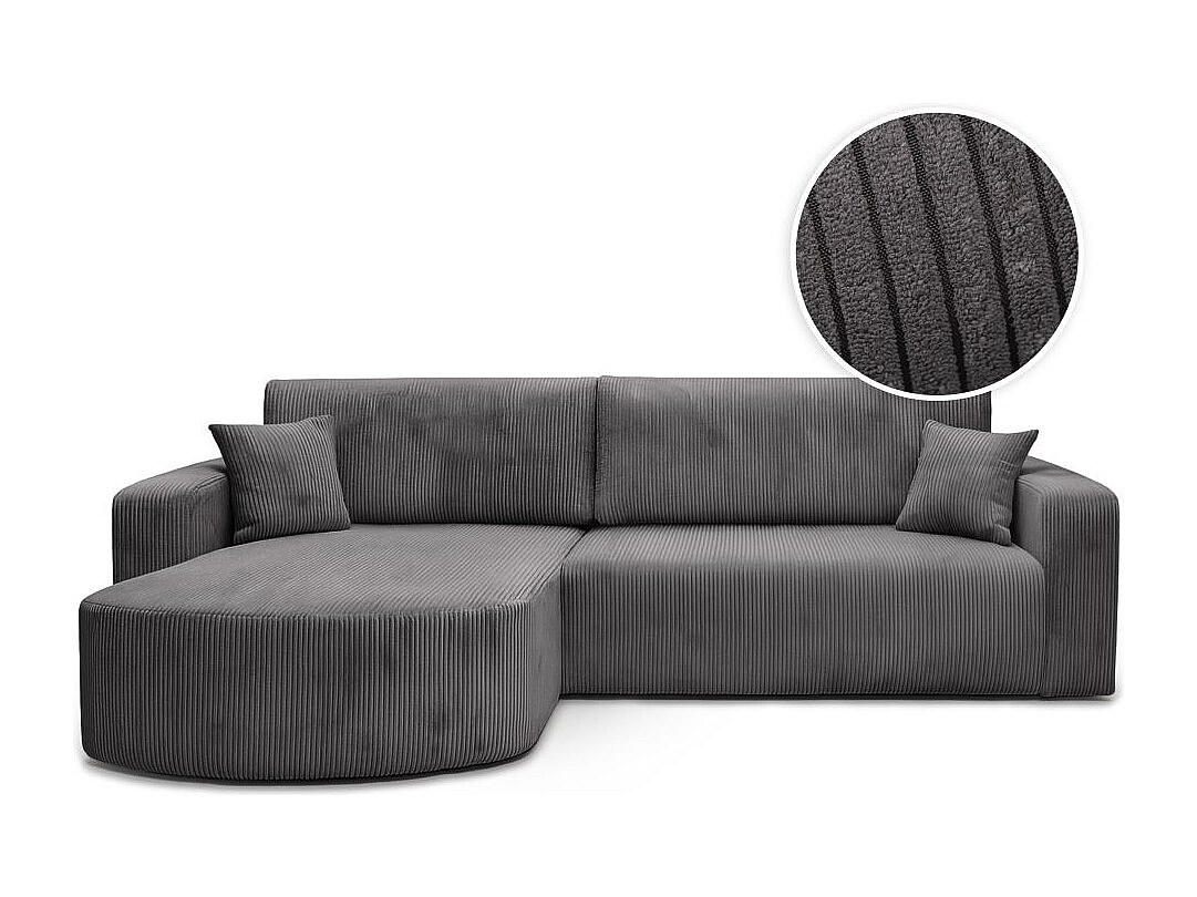 Canapé KIARA d'angle réversible convertible 4 places en velours côtelé - Gris anthracite