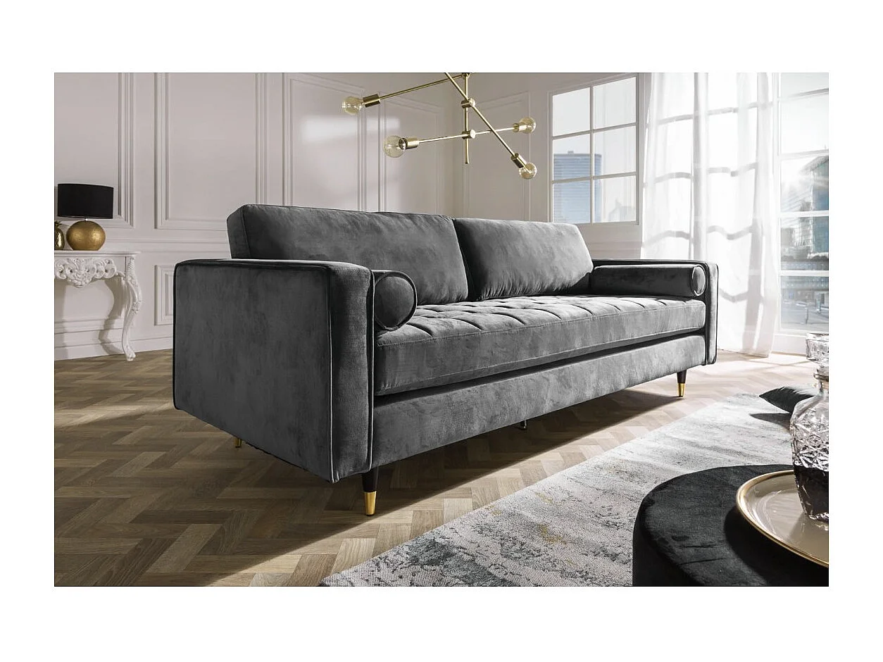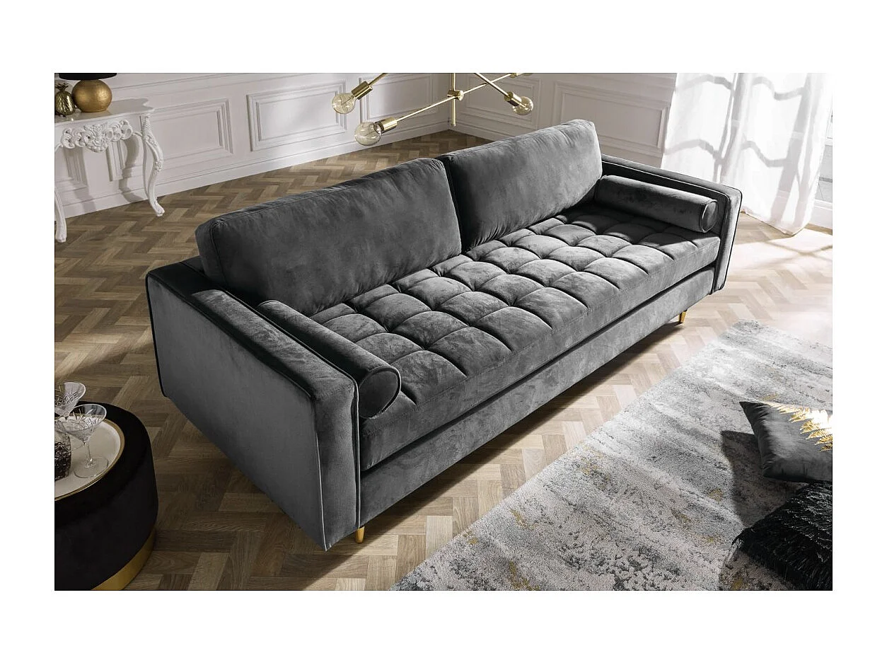 Canapé KOLIRI 3 places gris – Canapé design en velours avec structure en bois massif