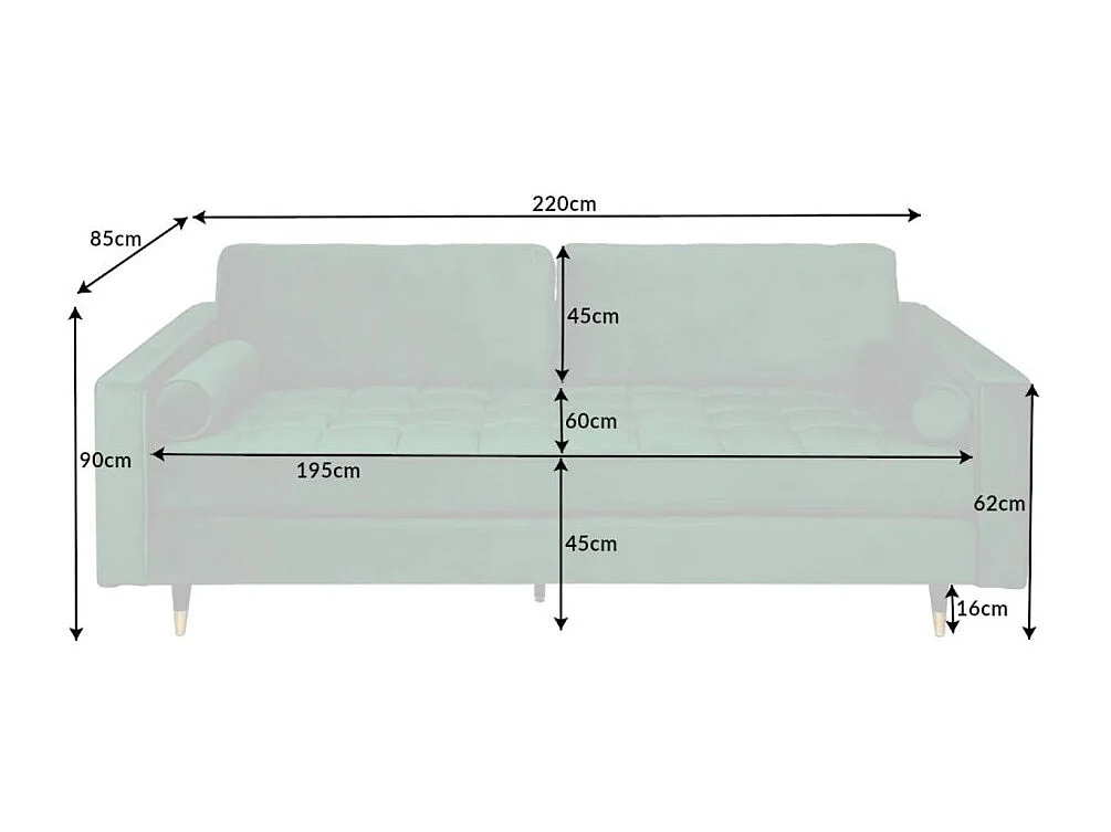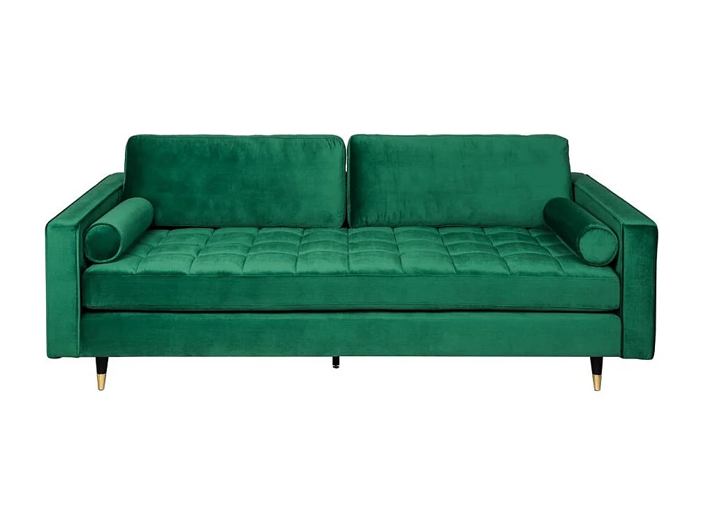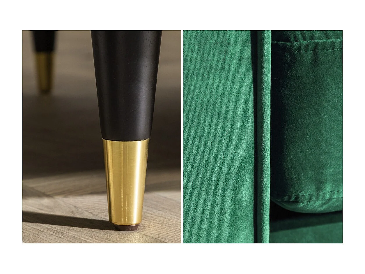 Canapé KOLIRI 3 places vert émeraude – Canapé design en velours avec structure en bois massif