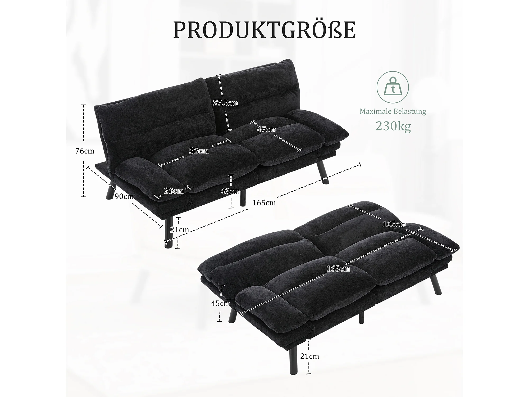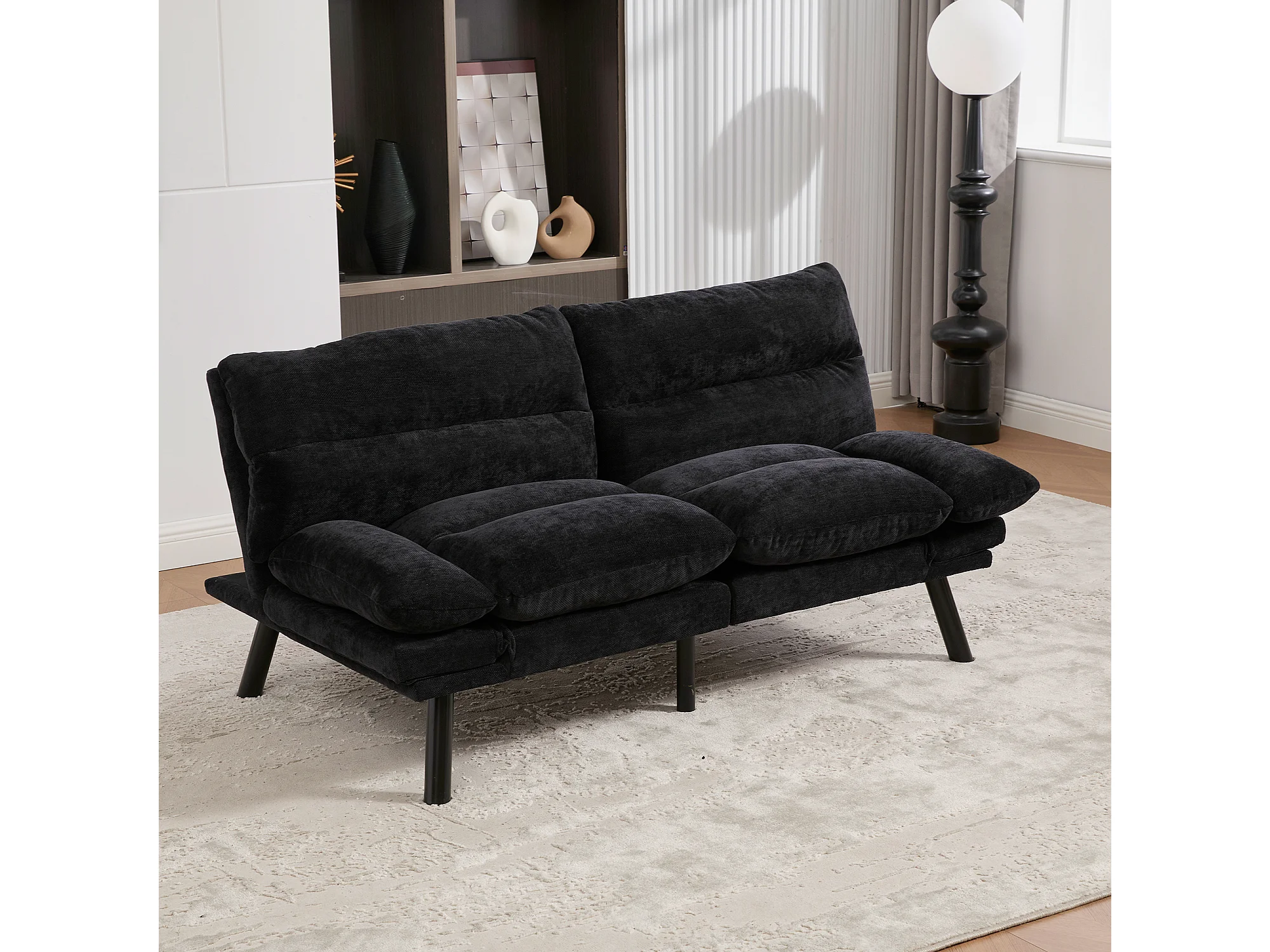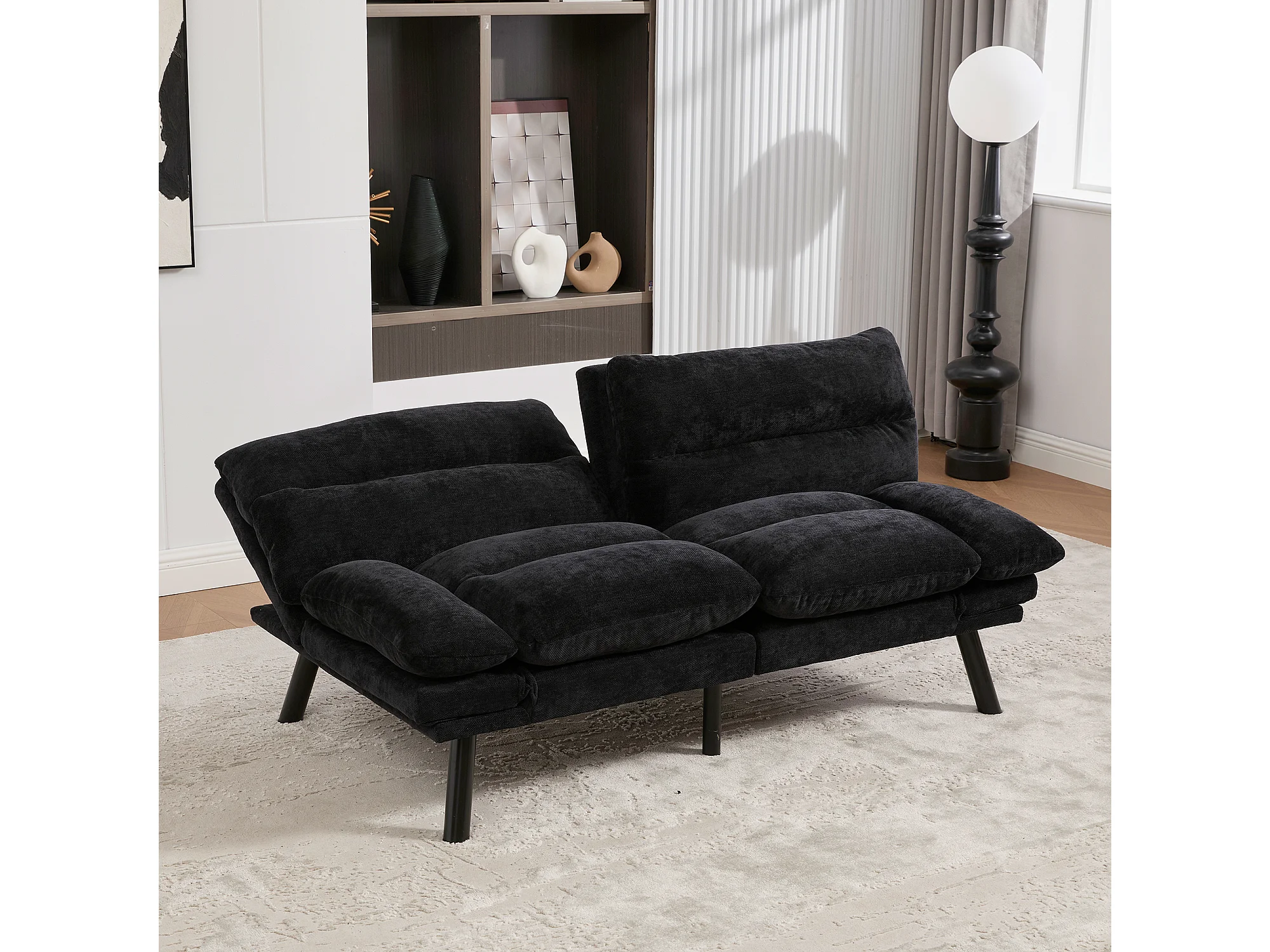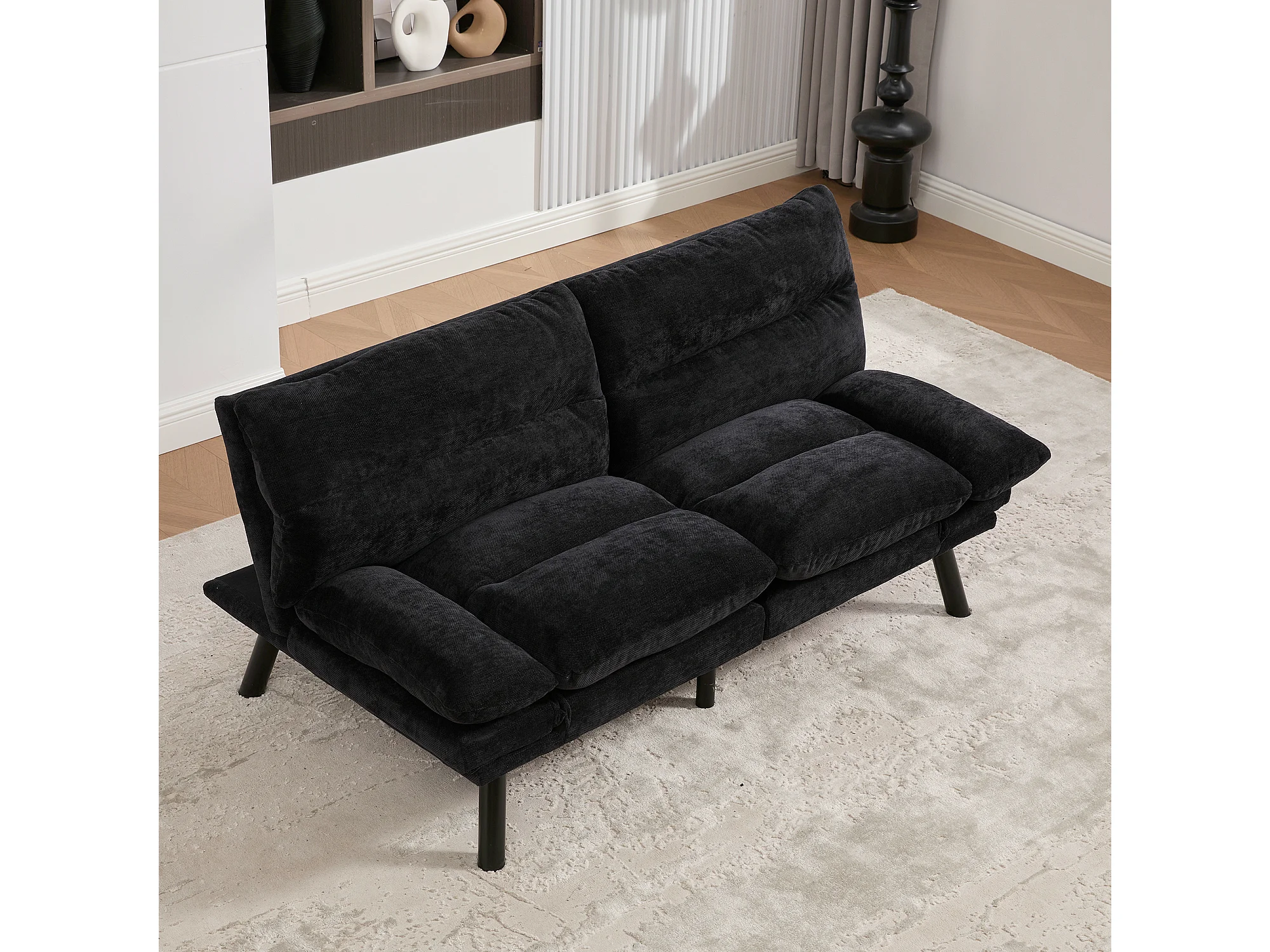 Canapé-lit 165x90x76cm confort ergonomique multi positions revêtement chenille structure solide Noir
