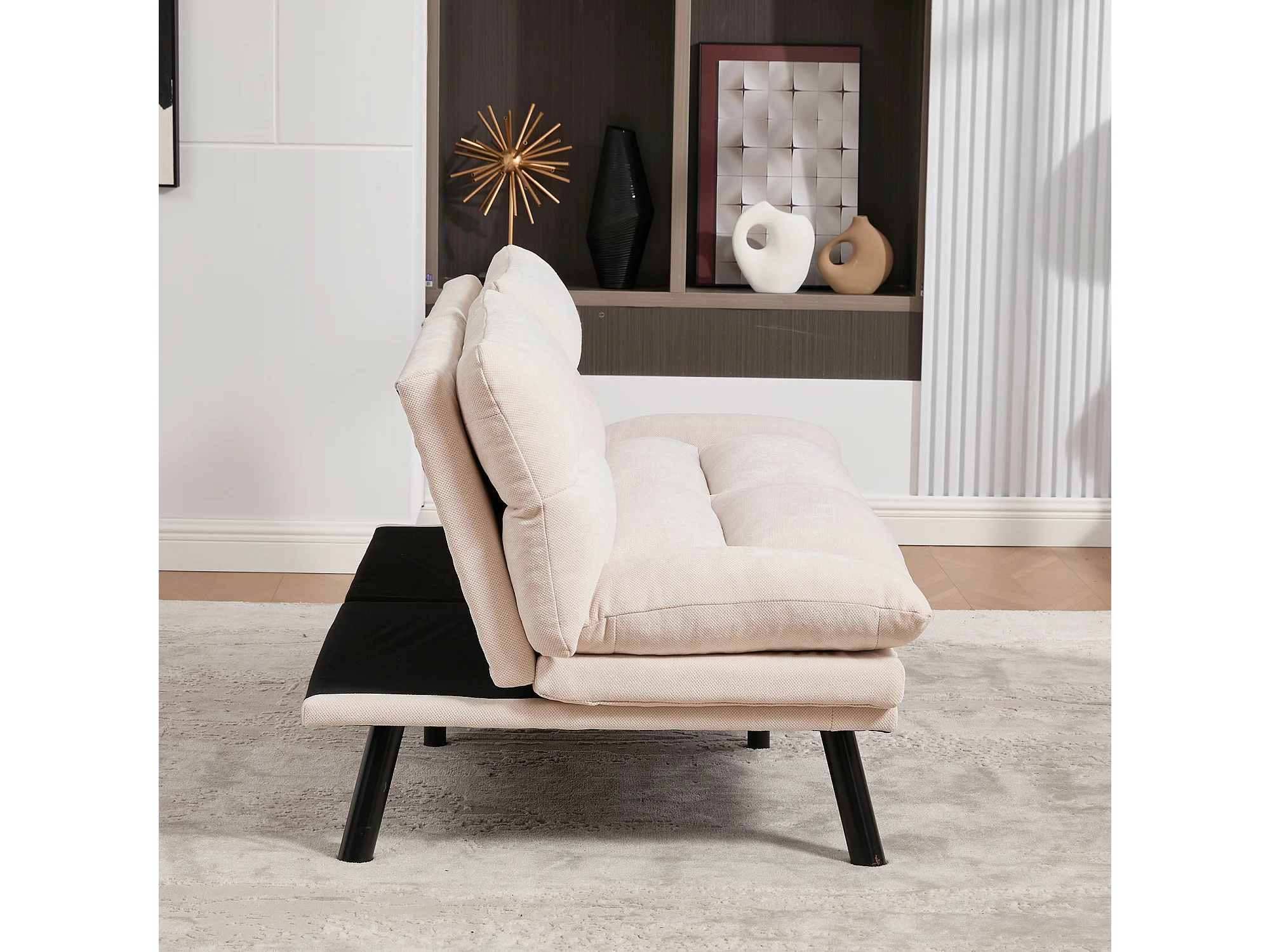 Canapé lit 165x90x76cm Design Moderne Dossier Réglable Chenille Beige Pour Salon (Sans matelas)