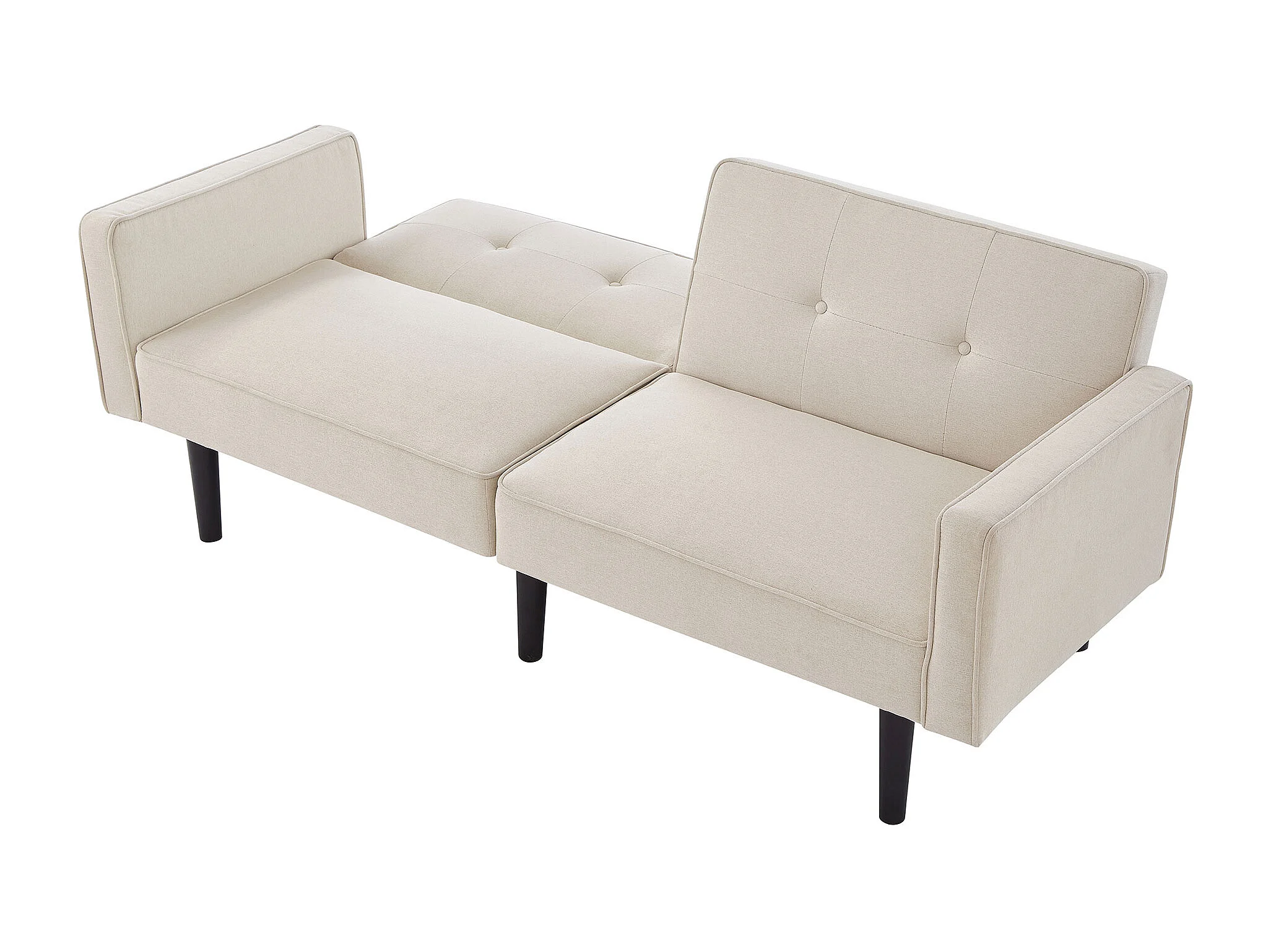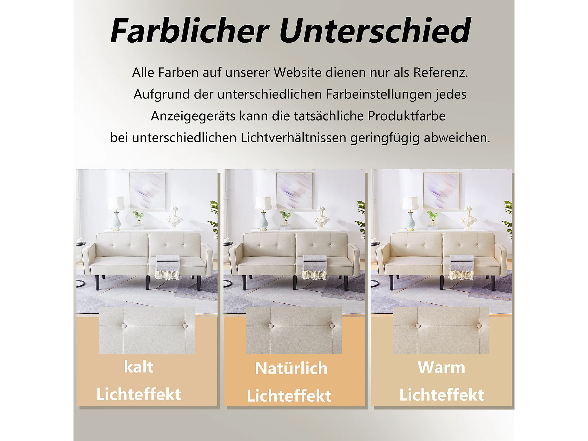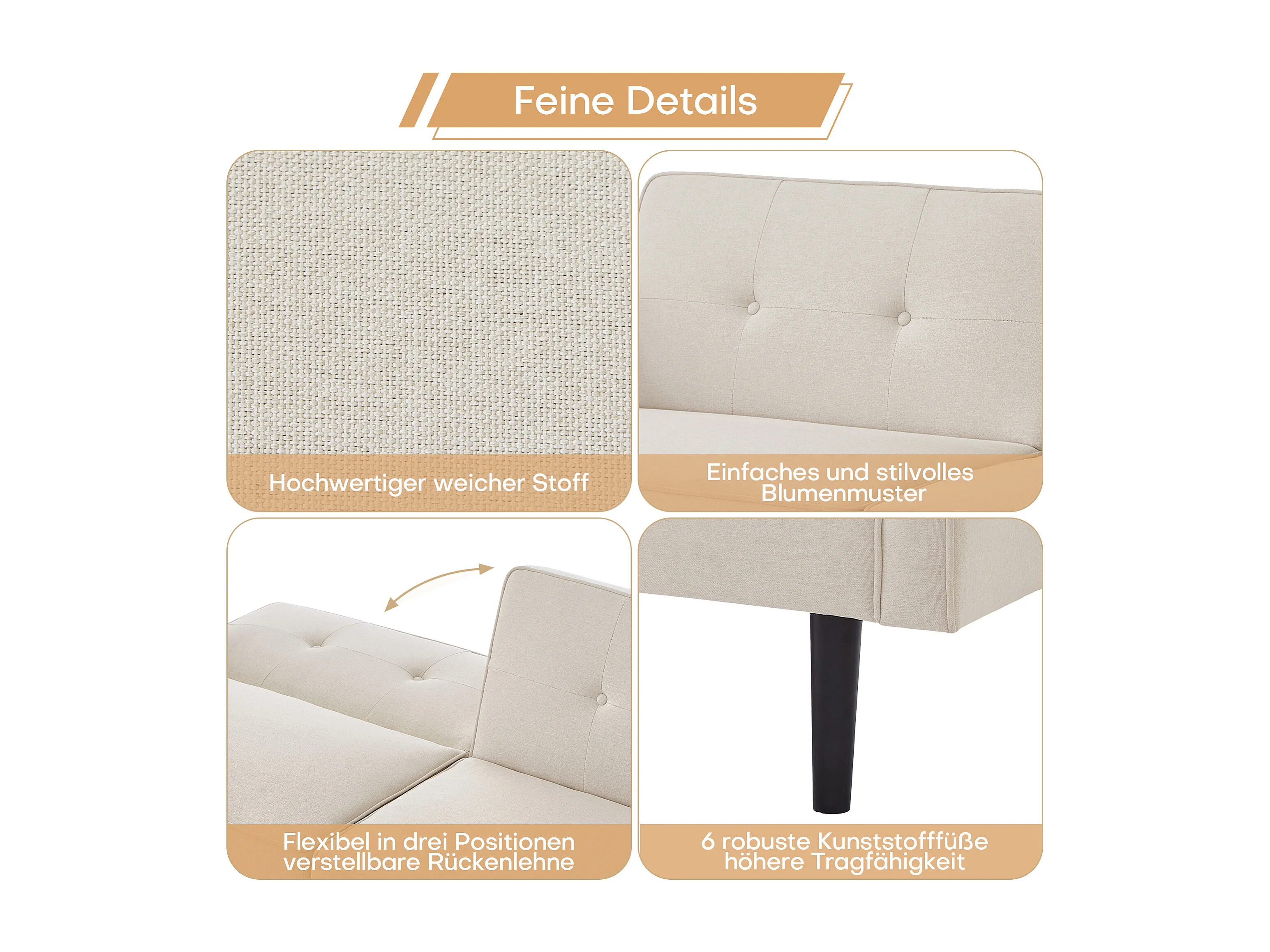 Canapé-lit 2 en 1, canapé double, dossier double réglable indépendamment, avec fonction couchage, tissu coton et lin, beige