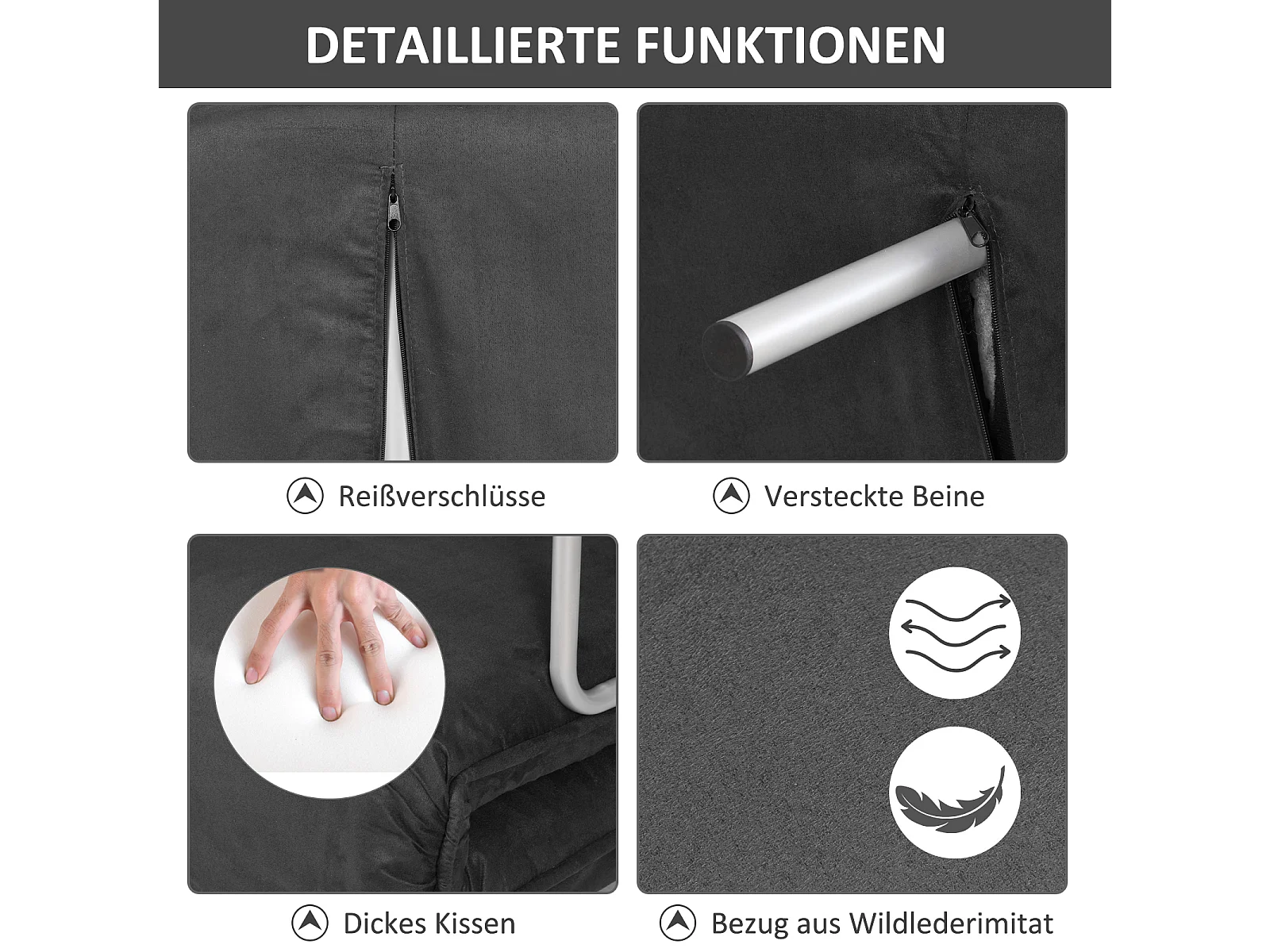 Canapé-lit 2 places 3 en 1 en suédine grise, avec accoudoirs, convertible en lit d’appoint et fauteuil pliant
