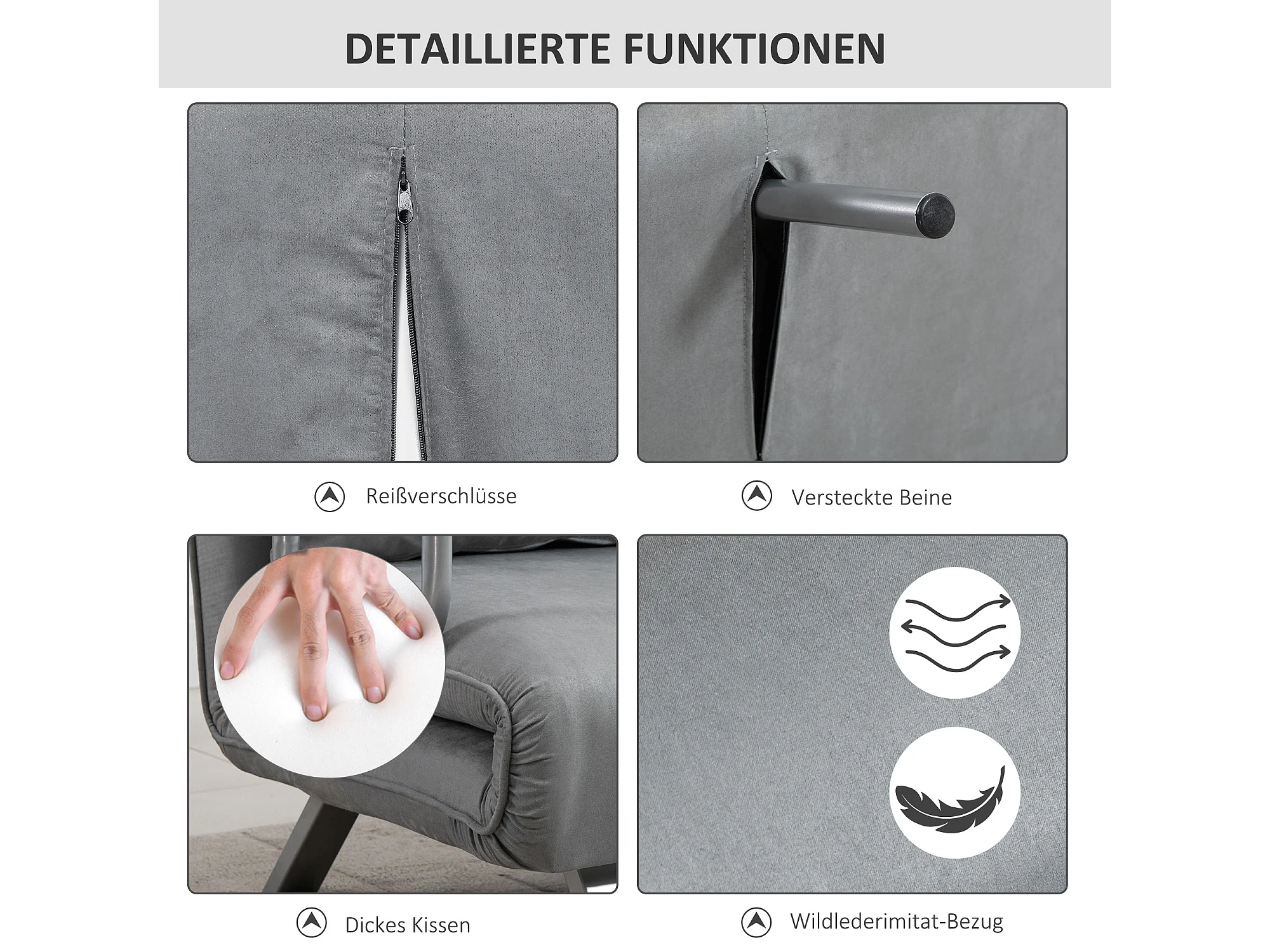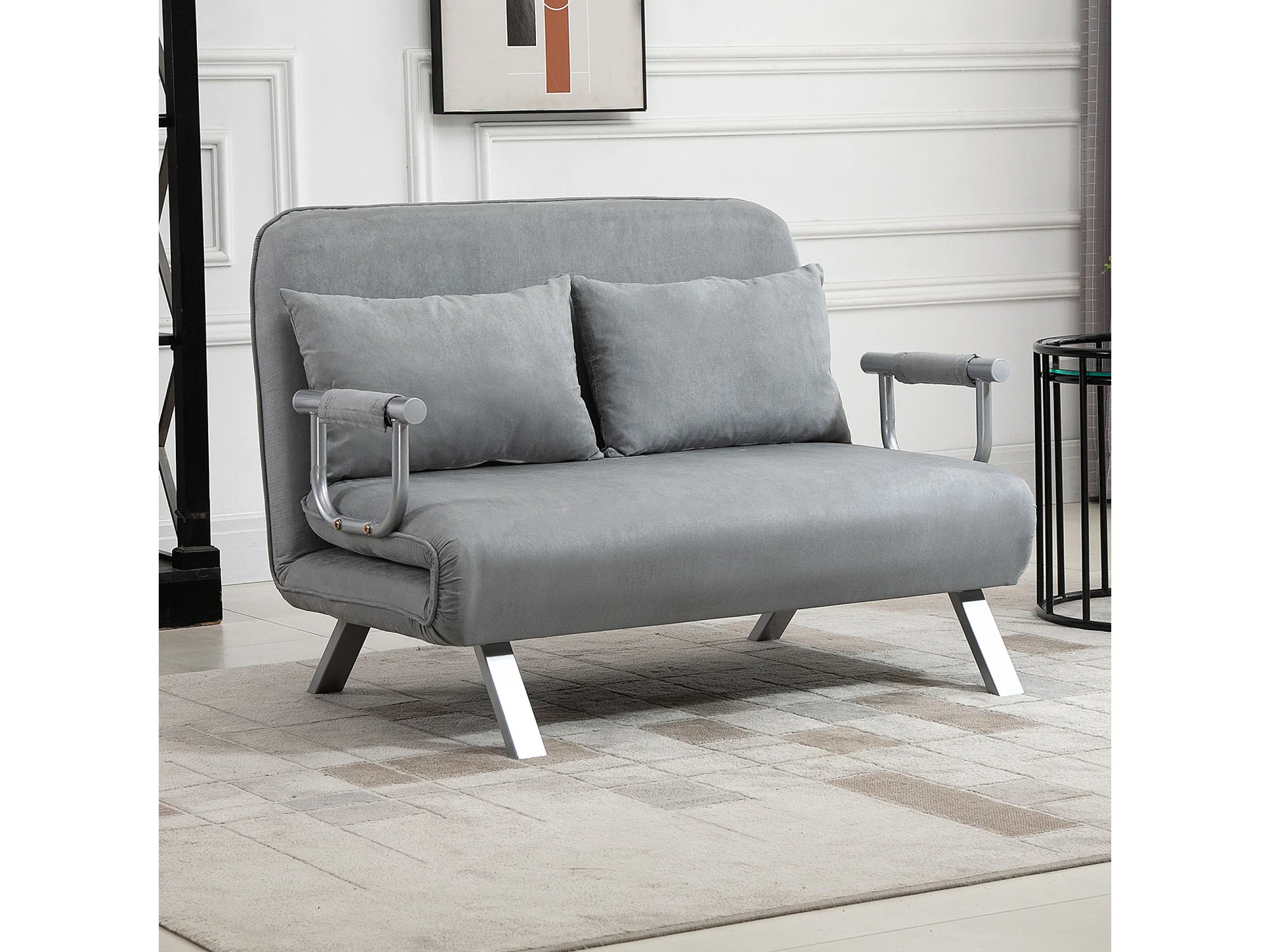 Canapé-lit 2 places gris clair avec coussins, dossier réglable, convertible en lit, capacité jusqu’à 150 kg