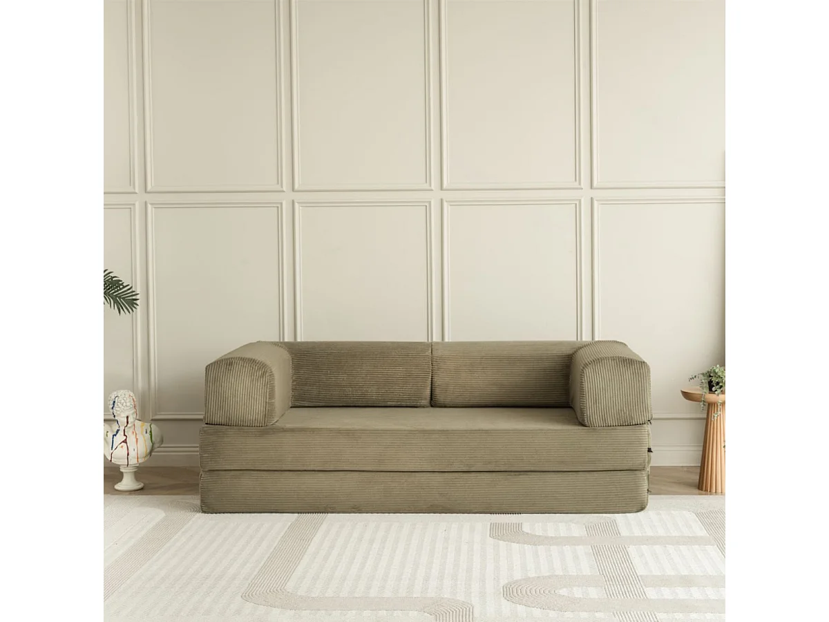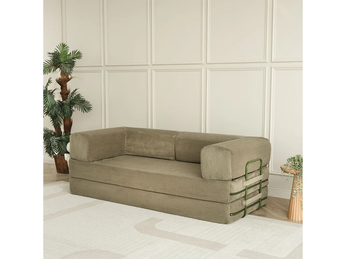 Canapé-lit 2 places modulable en mousse et tissu velours coloris vert - EDNA