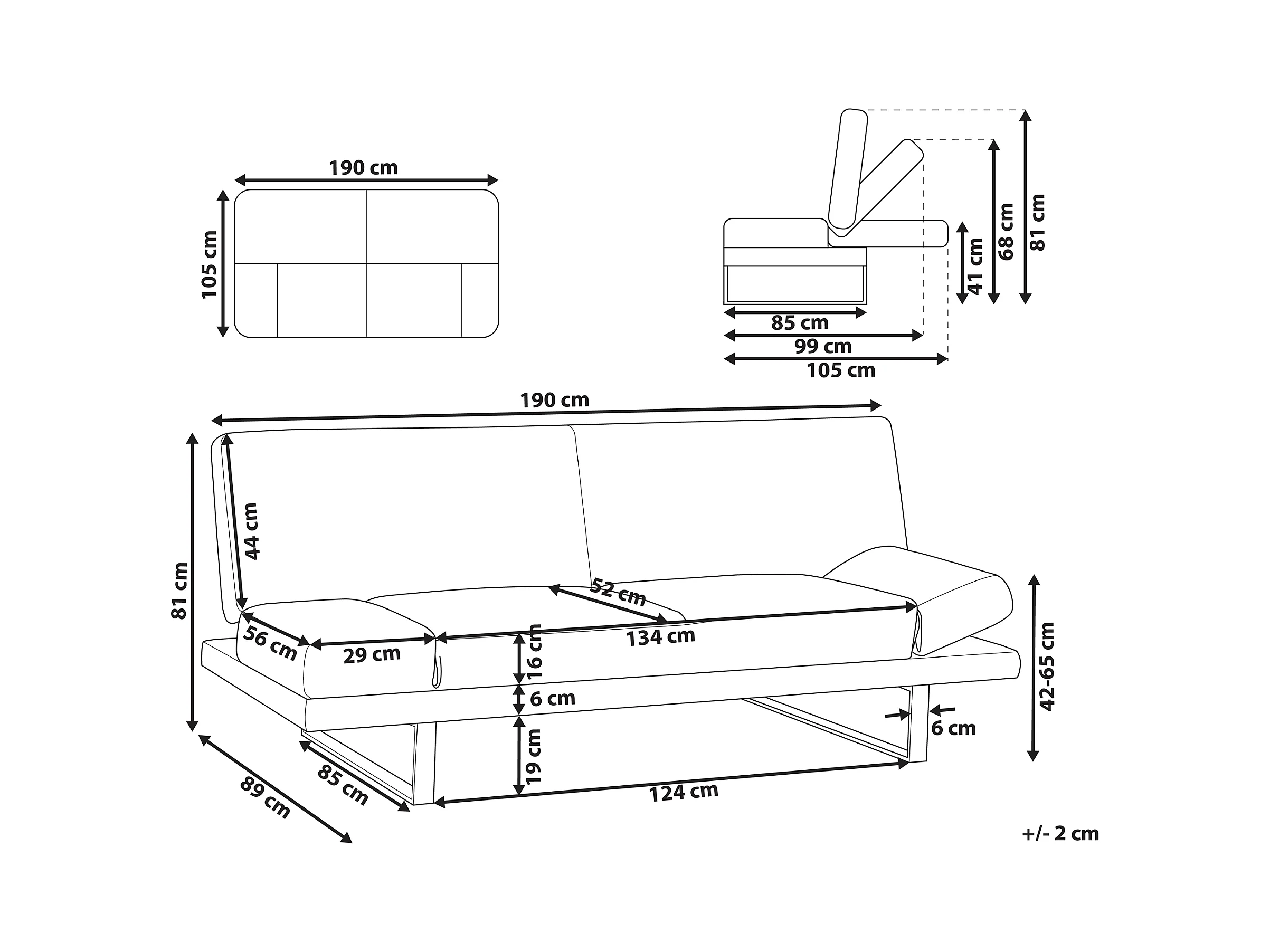 Canapé-lit 2 places YORK Tissu chenille Noir