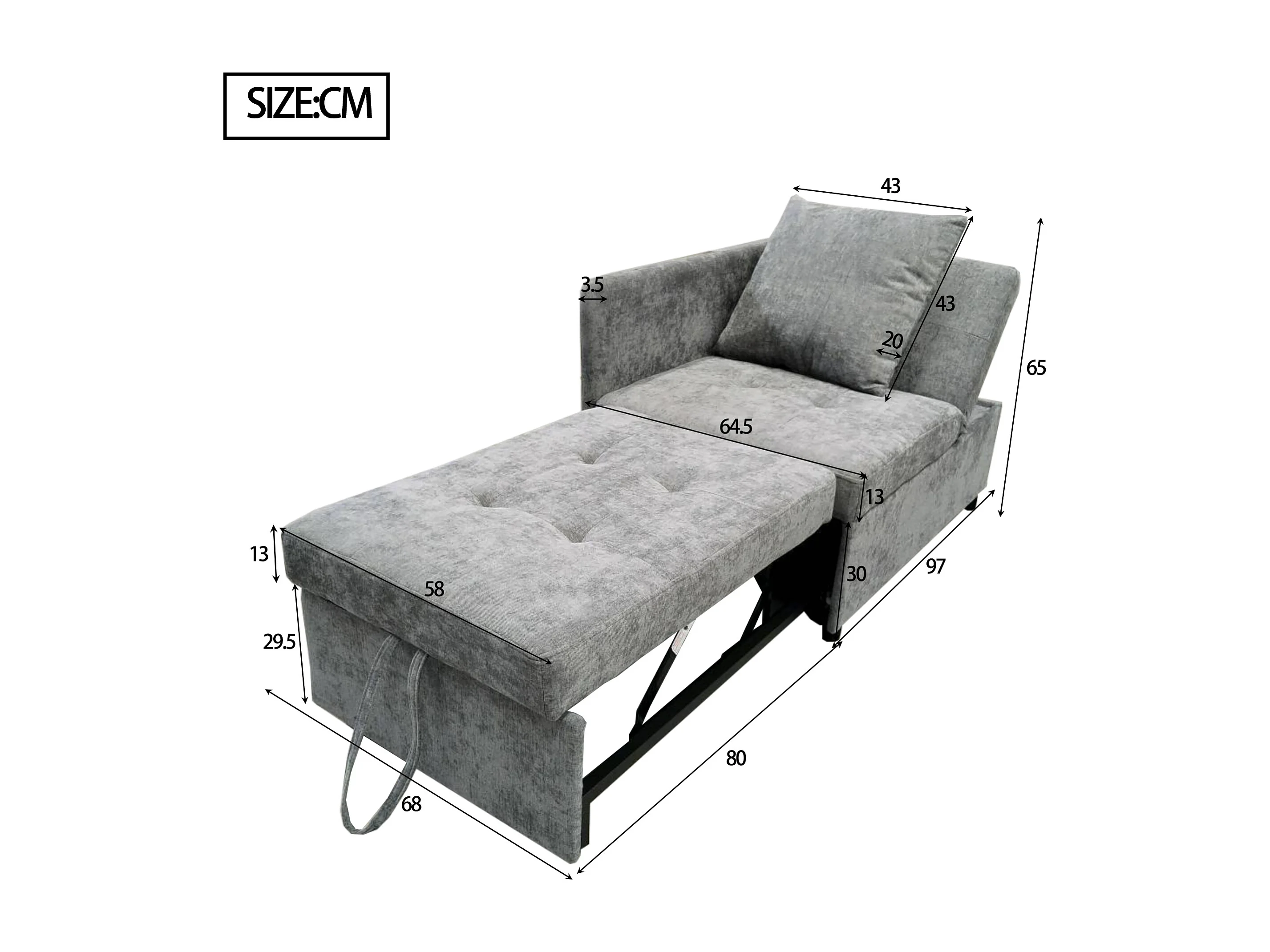 Canapé-lit 3 en 1 en lin, lit rembourré multifonction avec dossier ajustable, idéal pour chambre ou studio
