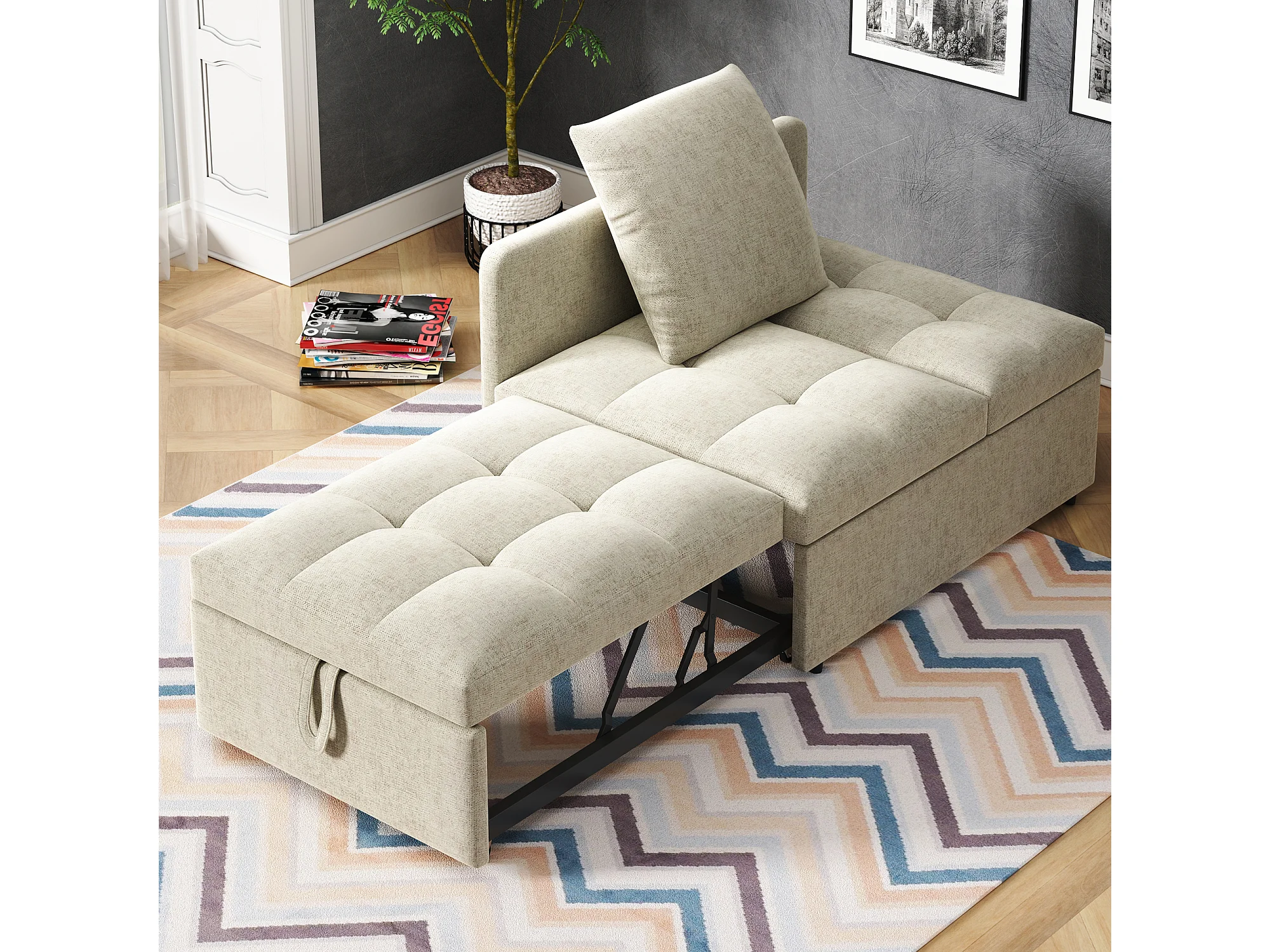 Canapé-lit 3 en 1 en lin respirant, dossier inclinable et design gain de place, lit d’appoint pour petits espaces