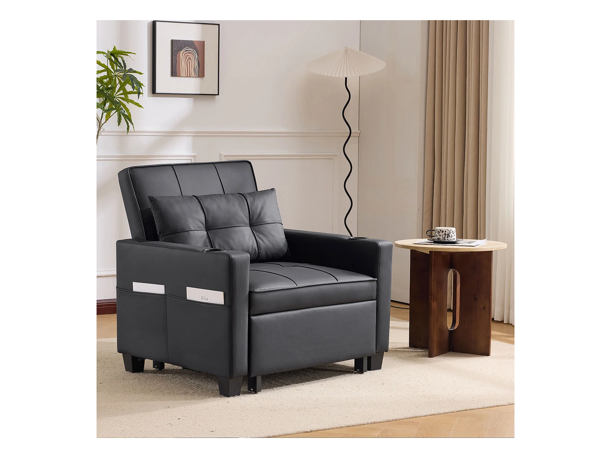Canapé-lit 3-en-1 extensible avec porte-gobelets et port USB, métal et bois, noir (74x87x84 cm)