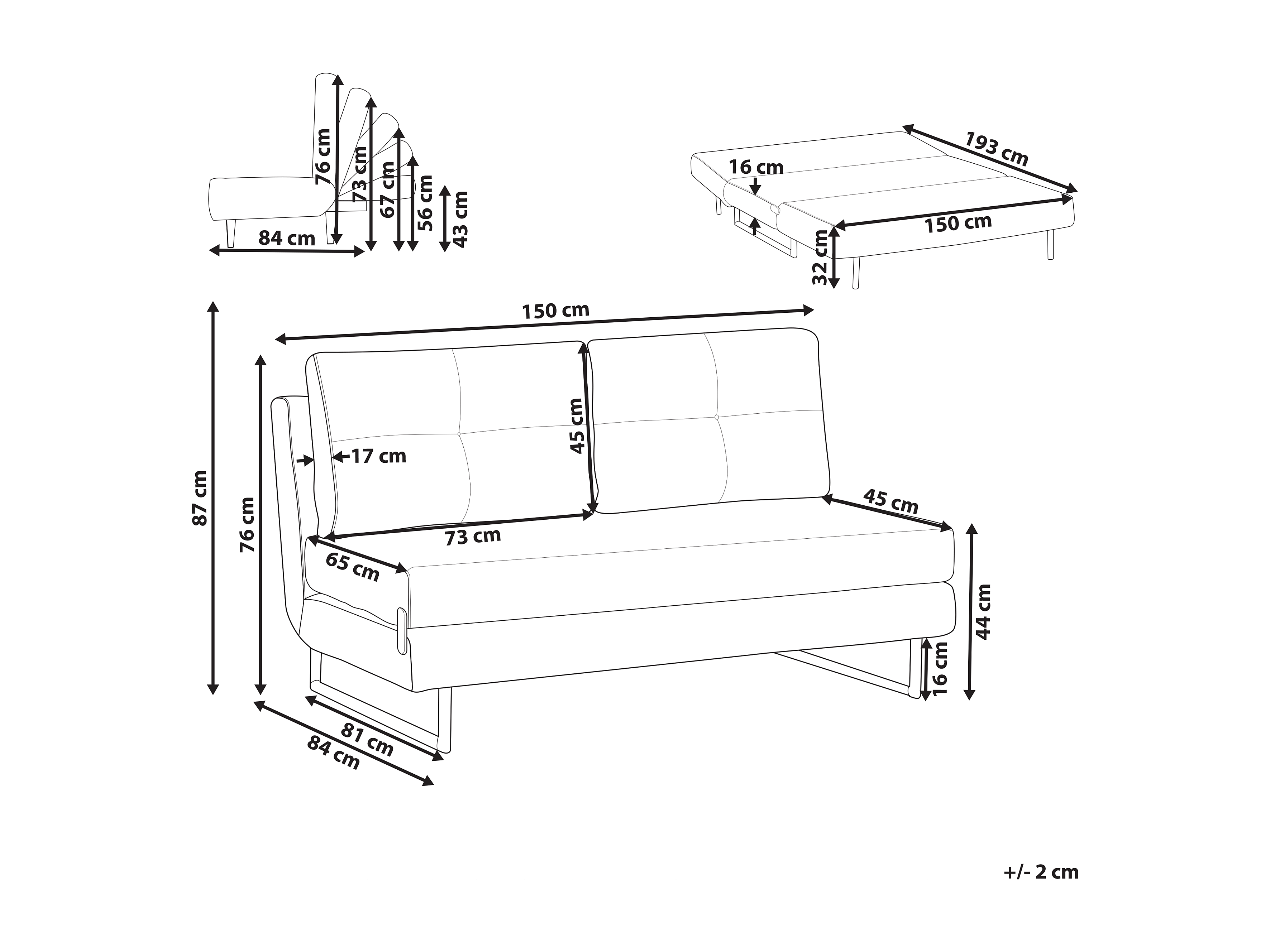 Caractéristiques clés: Possibilité de transformer le canapé en lit en toute simplicité, Dossier réglable en 5 positions, Extrêmement confortable et agréable, Design moderne, La finition hydrofuge permet aux éclaboussures de rester en surface, Design compact, idéal pour des espaces limités