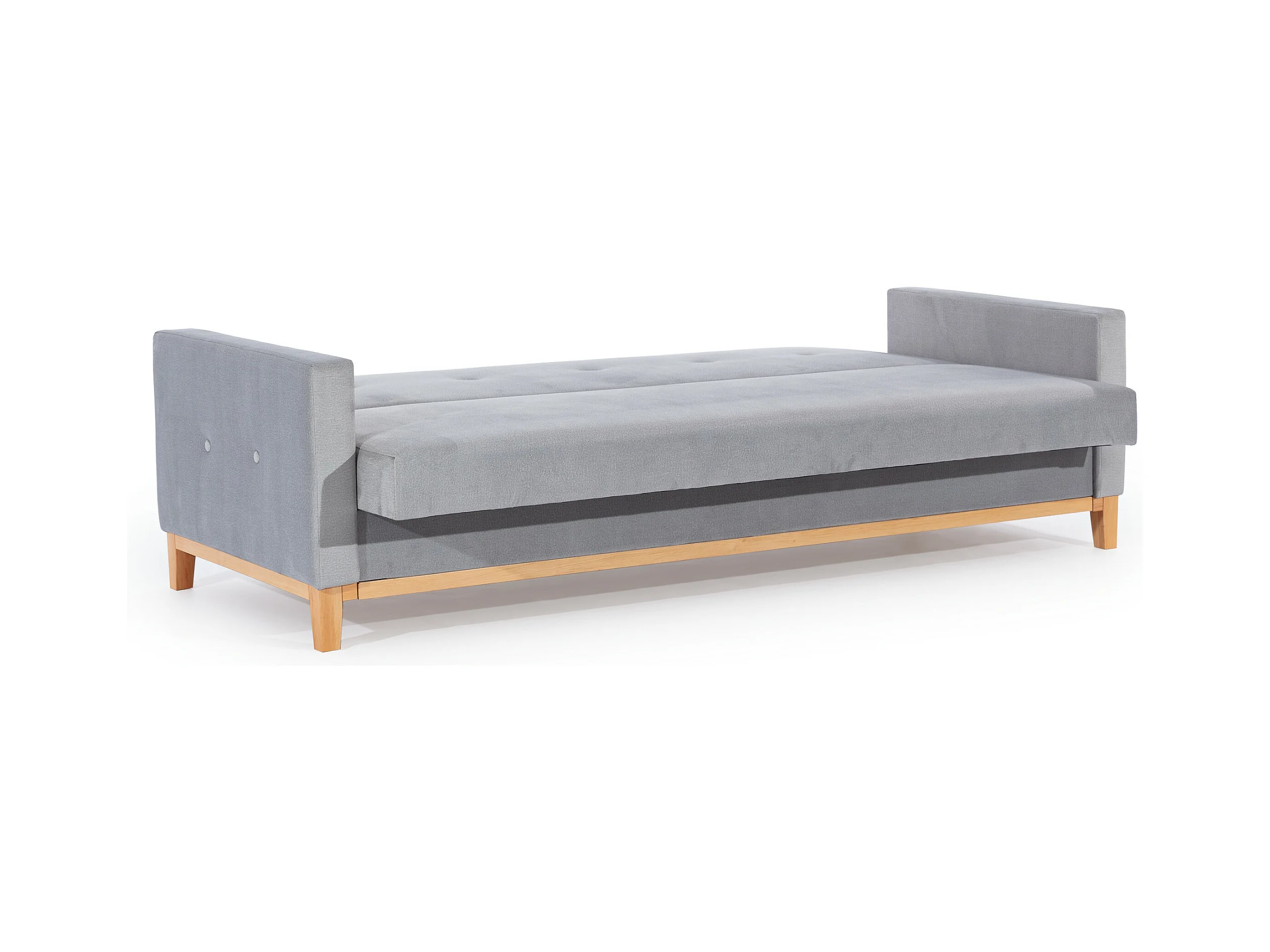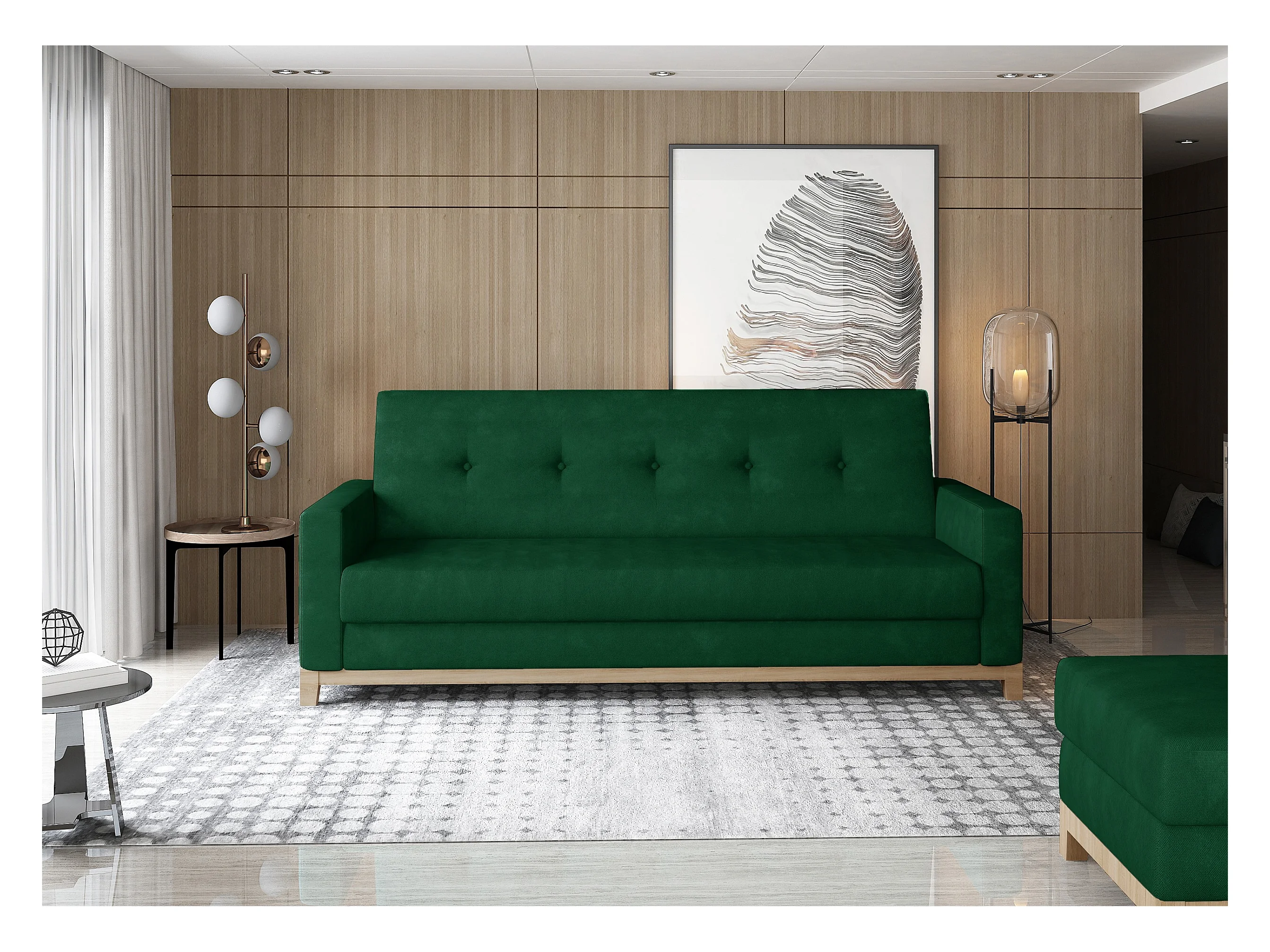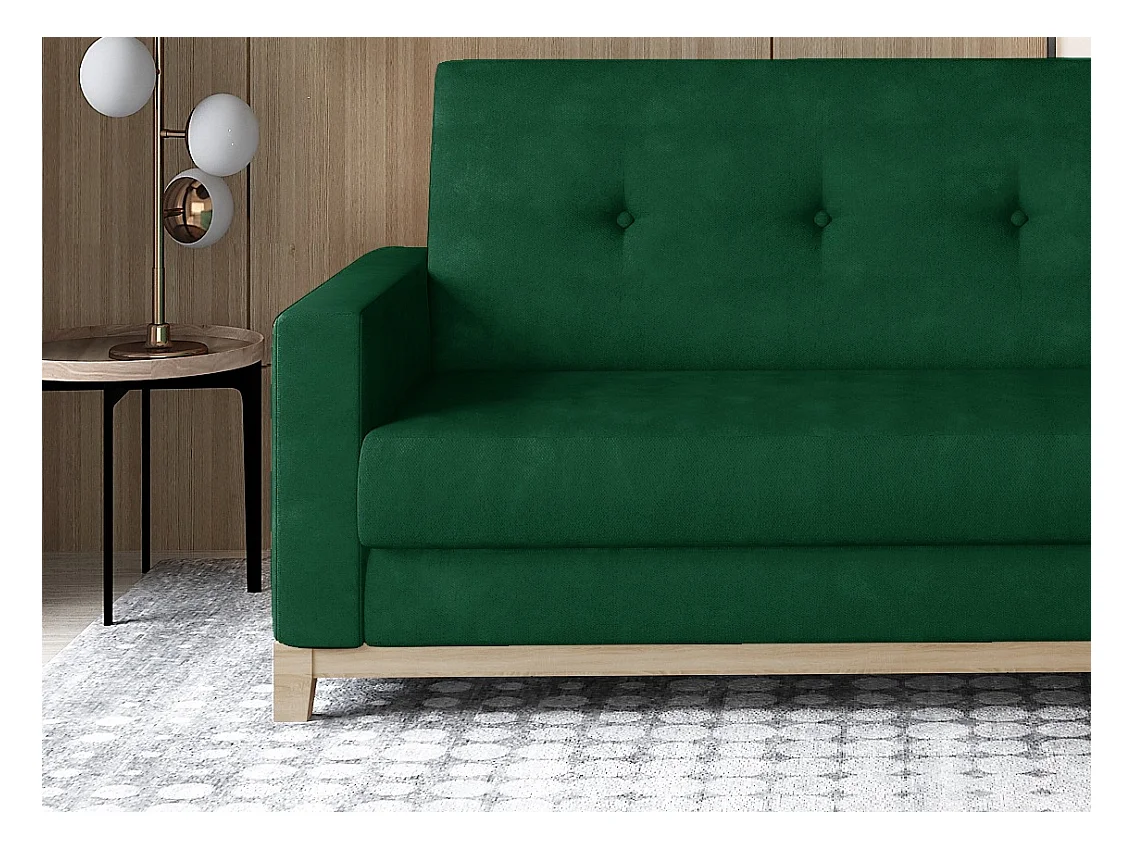 Canapé lit 3 places tissu vert foncé et pieds en bois de hêtre Saline 216cm