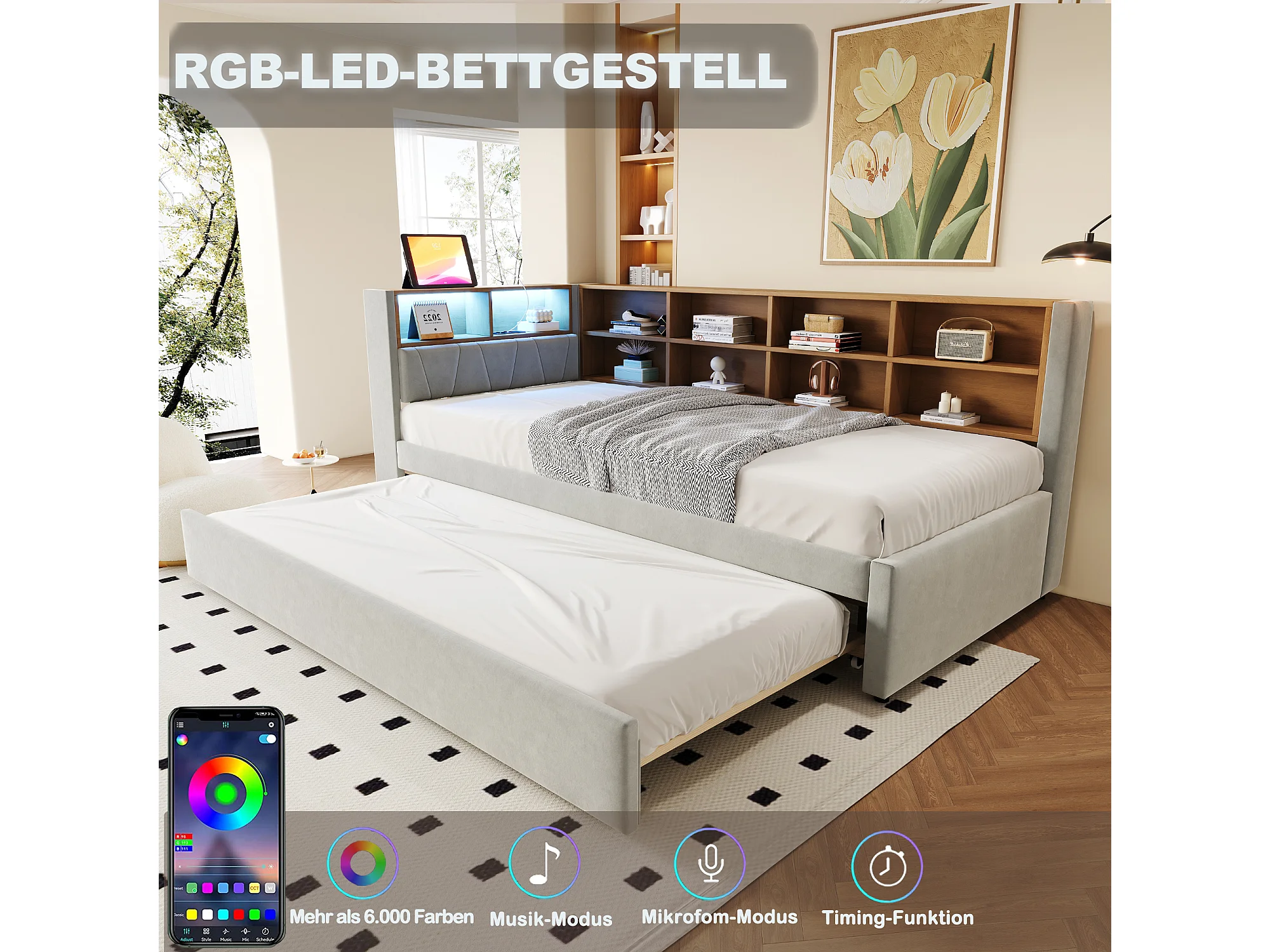 Canapé-lit 90*200CM - avec ports USB,LED et de nombreux compartiments de rangement - lit gigogne 90*190CM - flanelle - Gris clair