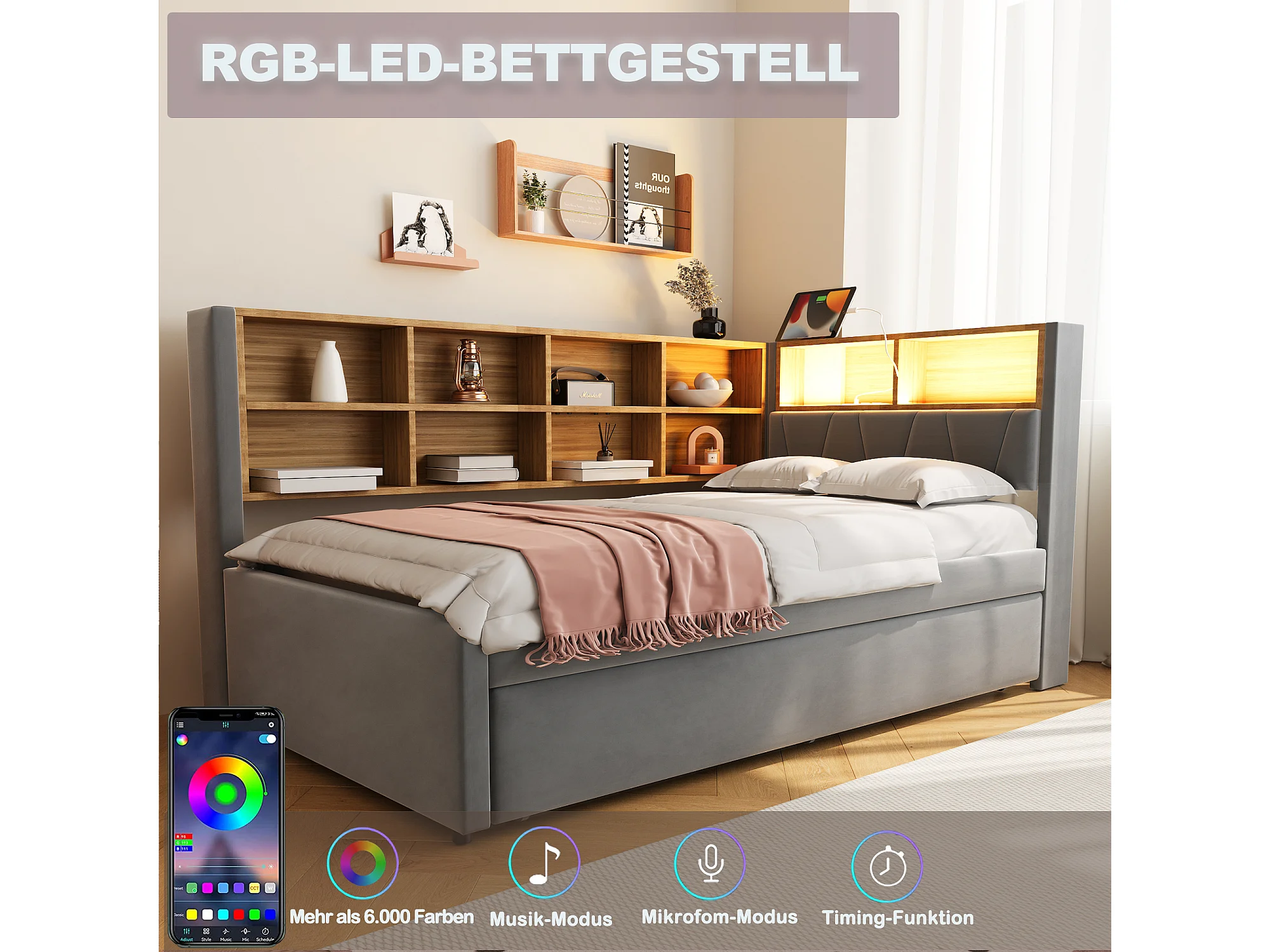 Canapé-lit 90*200CM - avec ports USB,LED et de nombreux compartiments de rangement - lit gigogne 90*190CM - flanelle - gris foncé